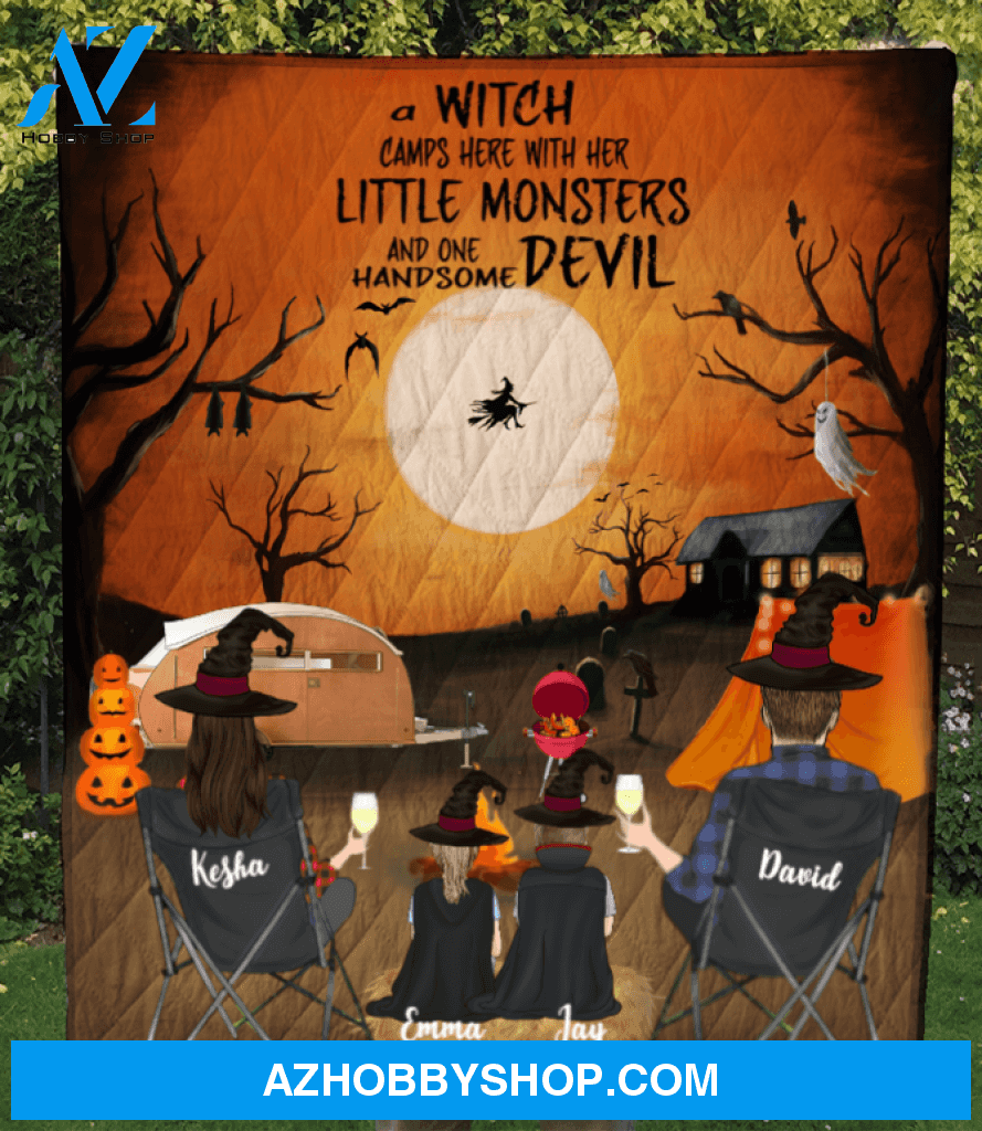 Couple And 2 Kids, Family With 2 Kids, CampWeen Blanket