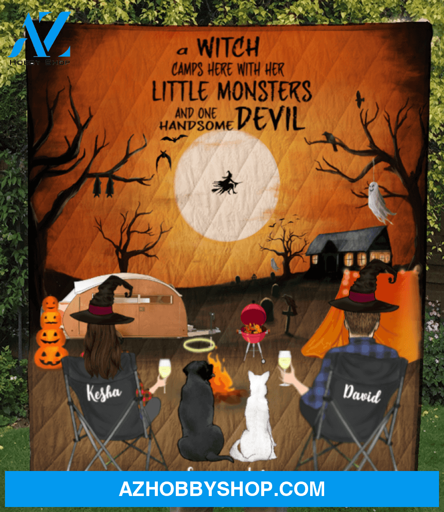 Couple And 2 Pets, Family With 2 Pets, CampWeen Blanket