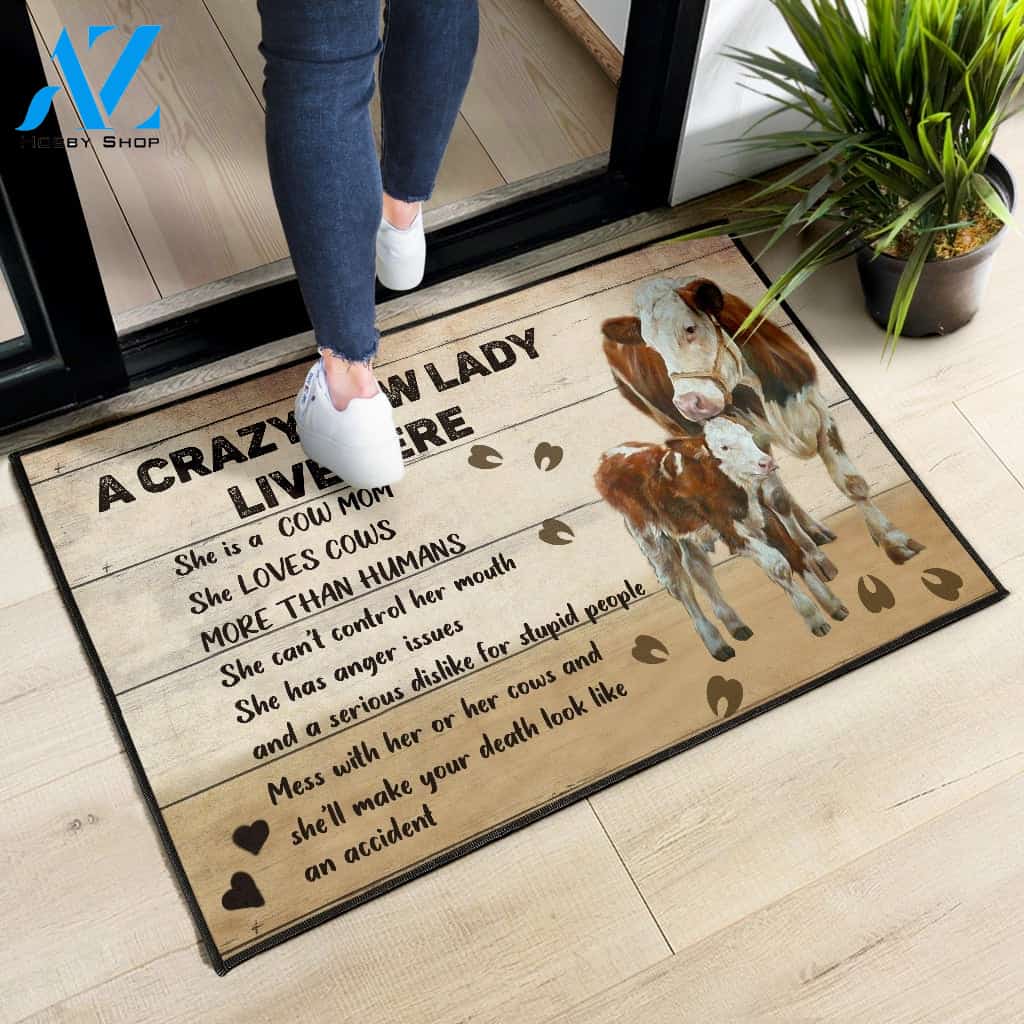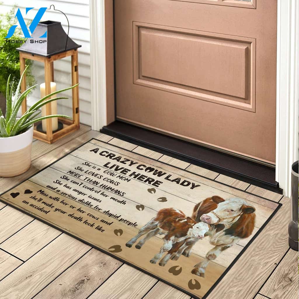 Cow Doormat - A Crazy Cow Lady Live Here Gift For Cow lovers