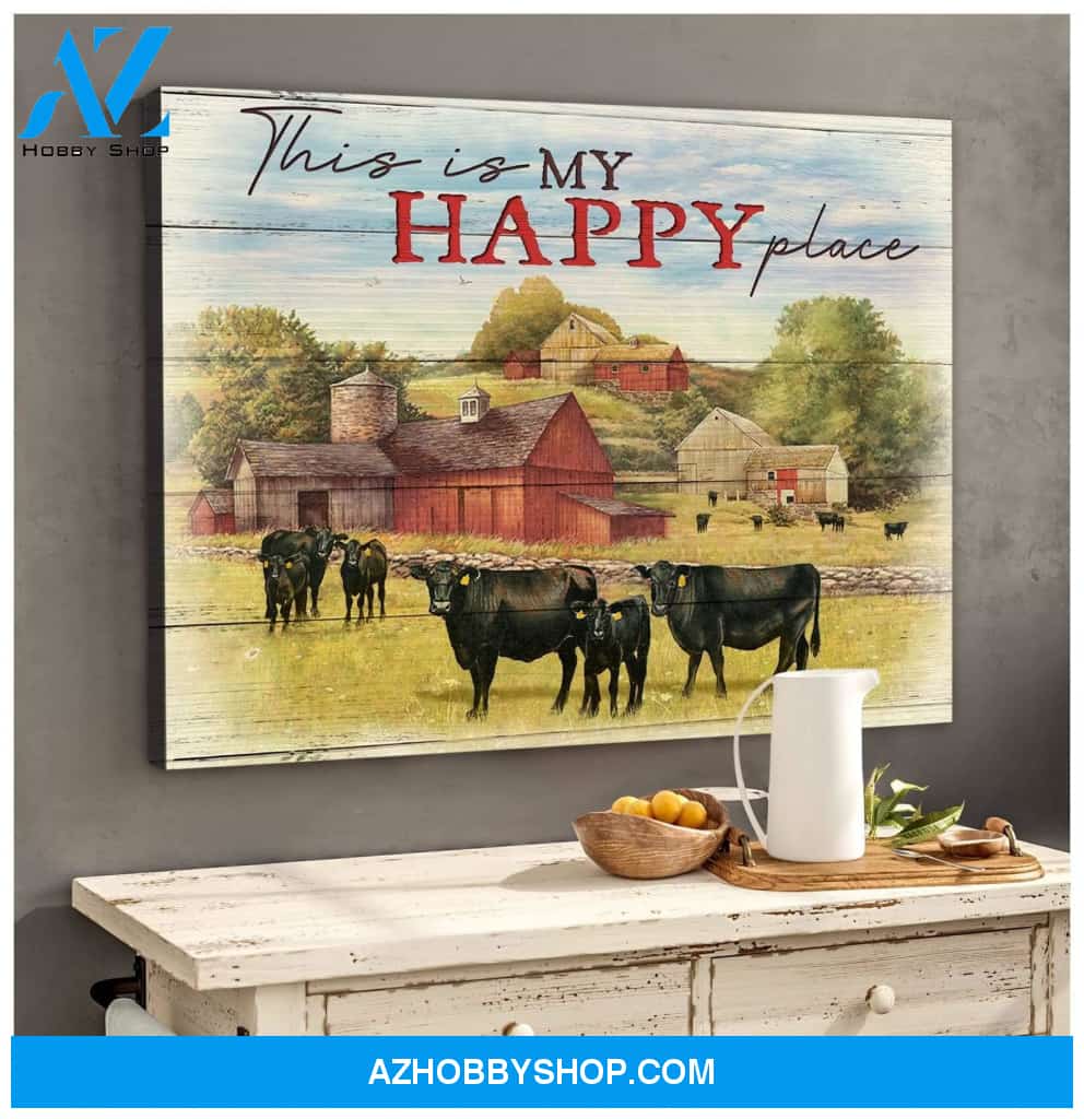 Cow Farm Premium Canvas Wall Art, Wall Decor Visual Art - This is My Happy Place Premium Canvas