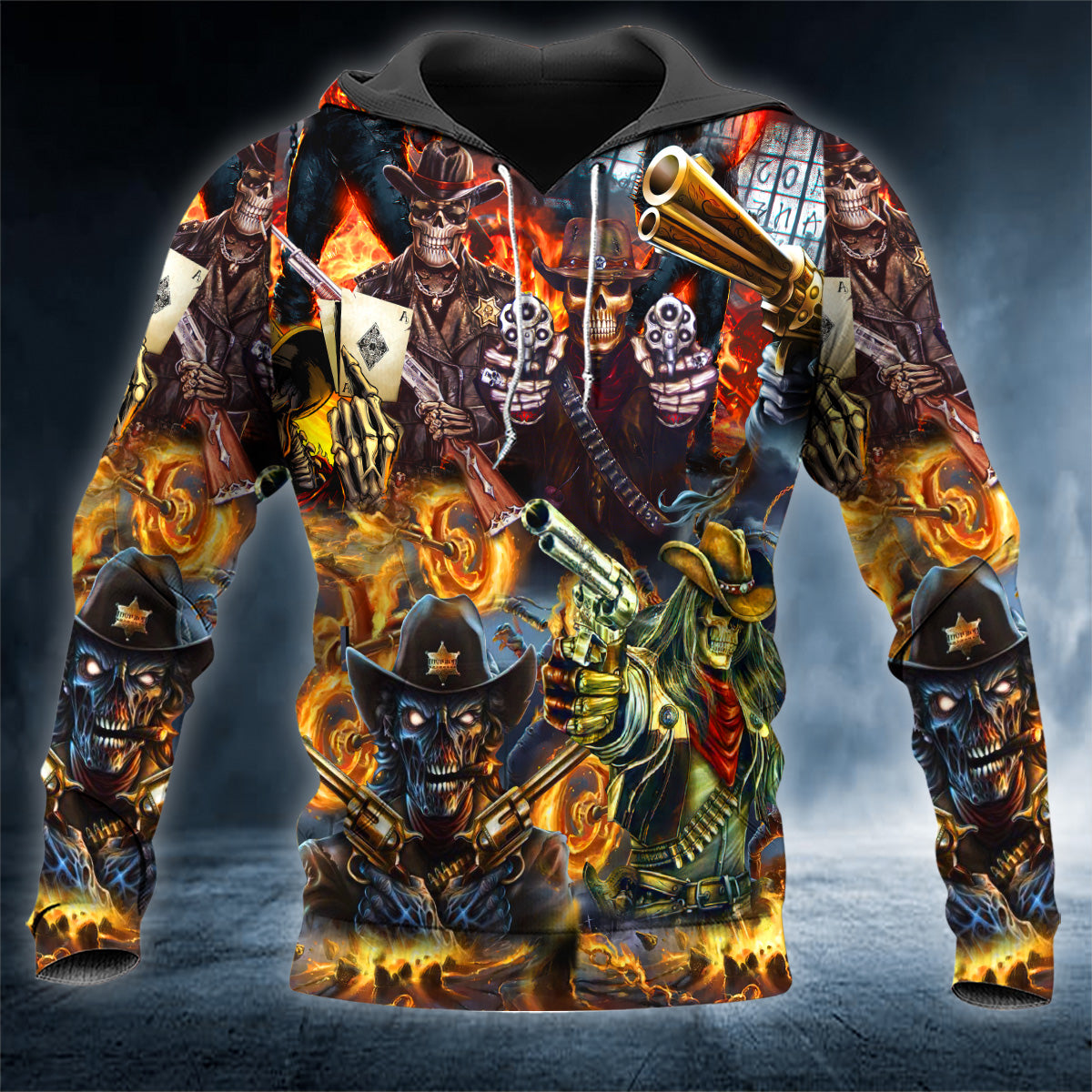 Cowboy Skeleton Gun Fight Skull 3D All Over Printed Unisex Hoodie US Size