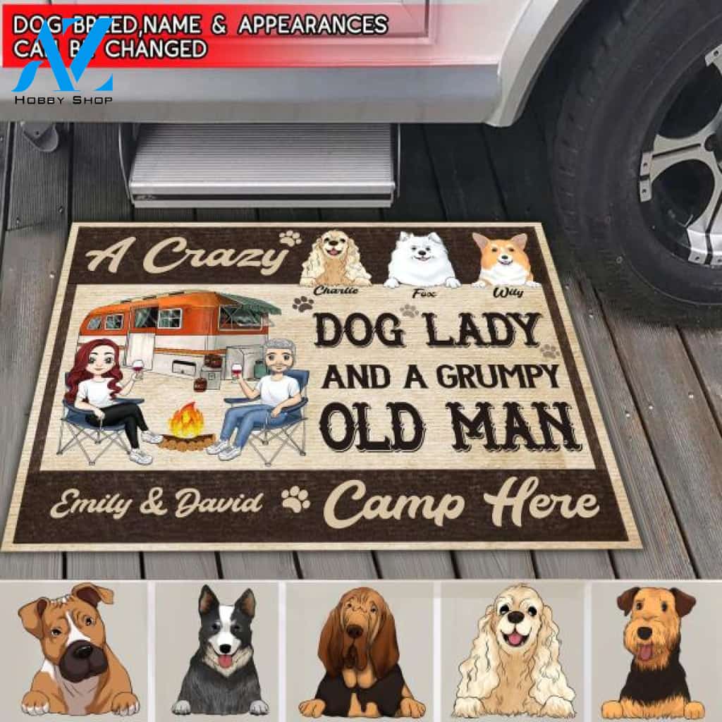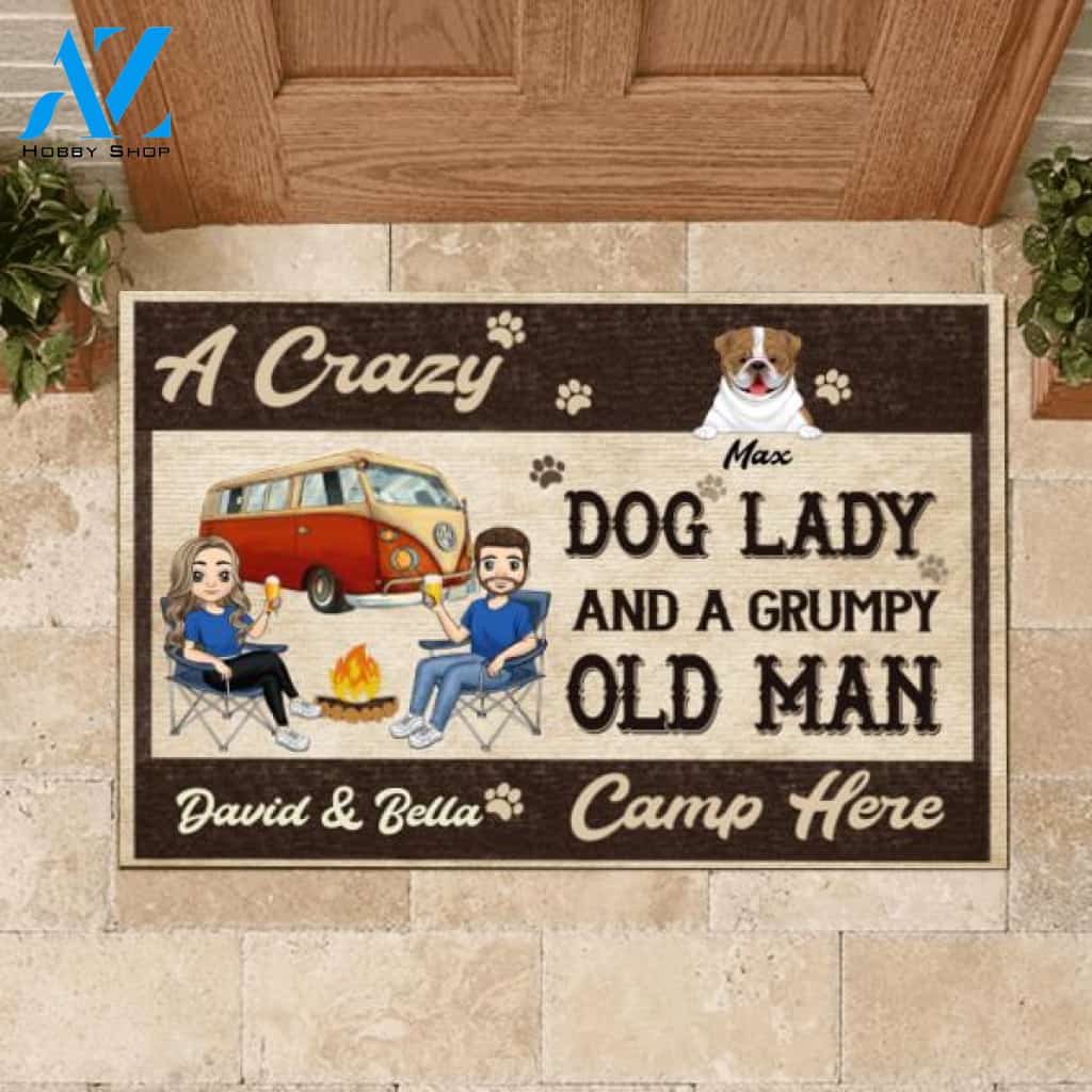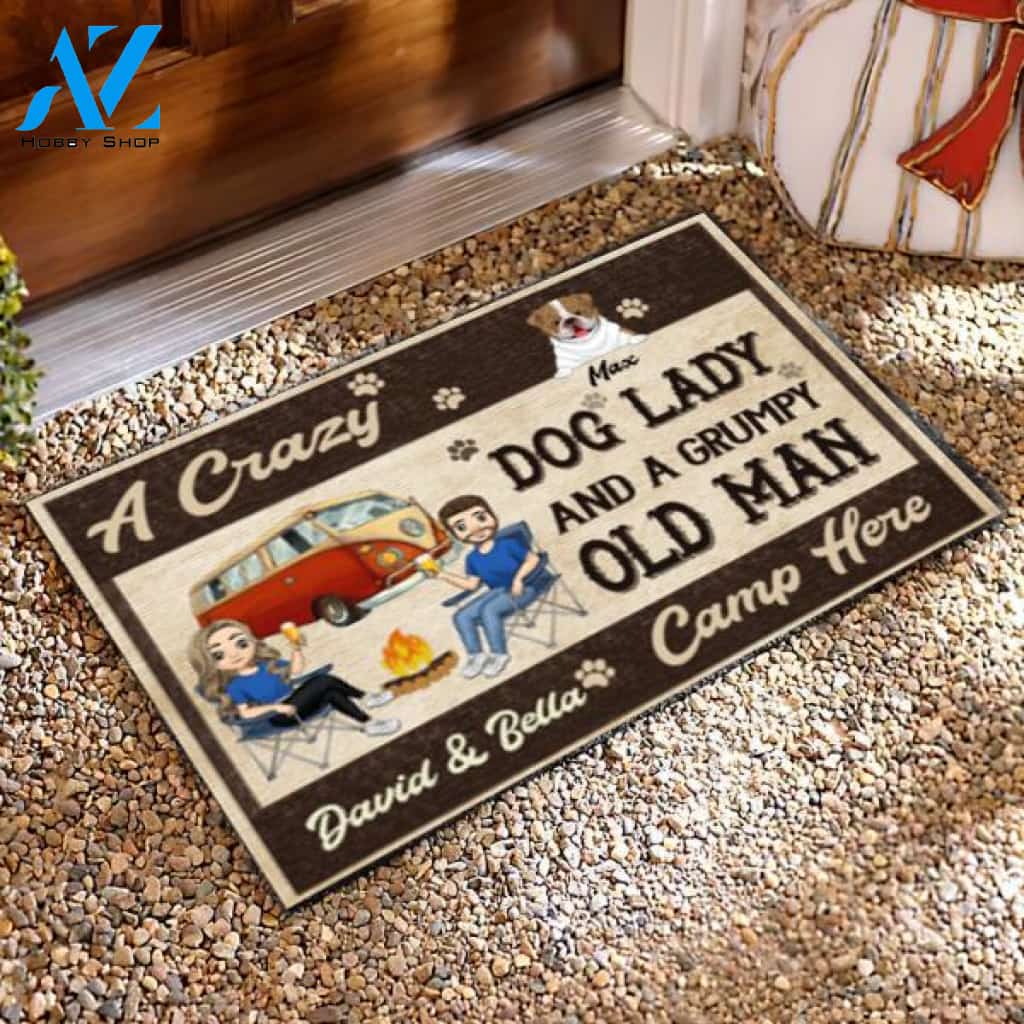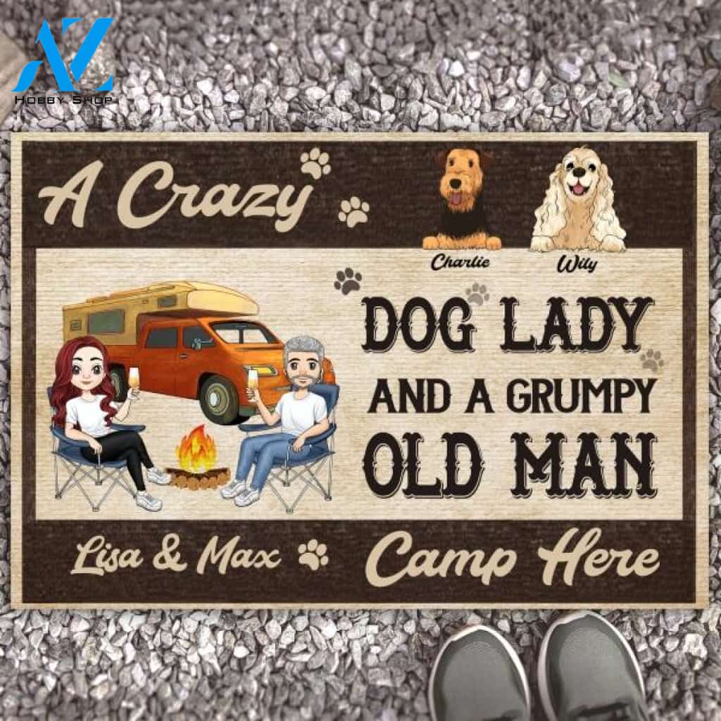 Crazy Dog Lady And Grumpy Old Man Camp Here - Personalized Custom Doormat