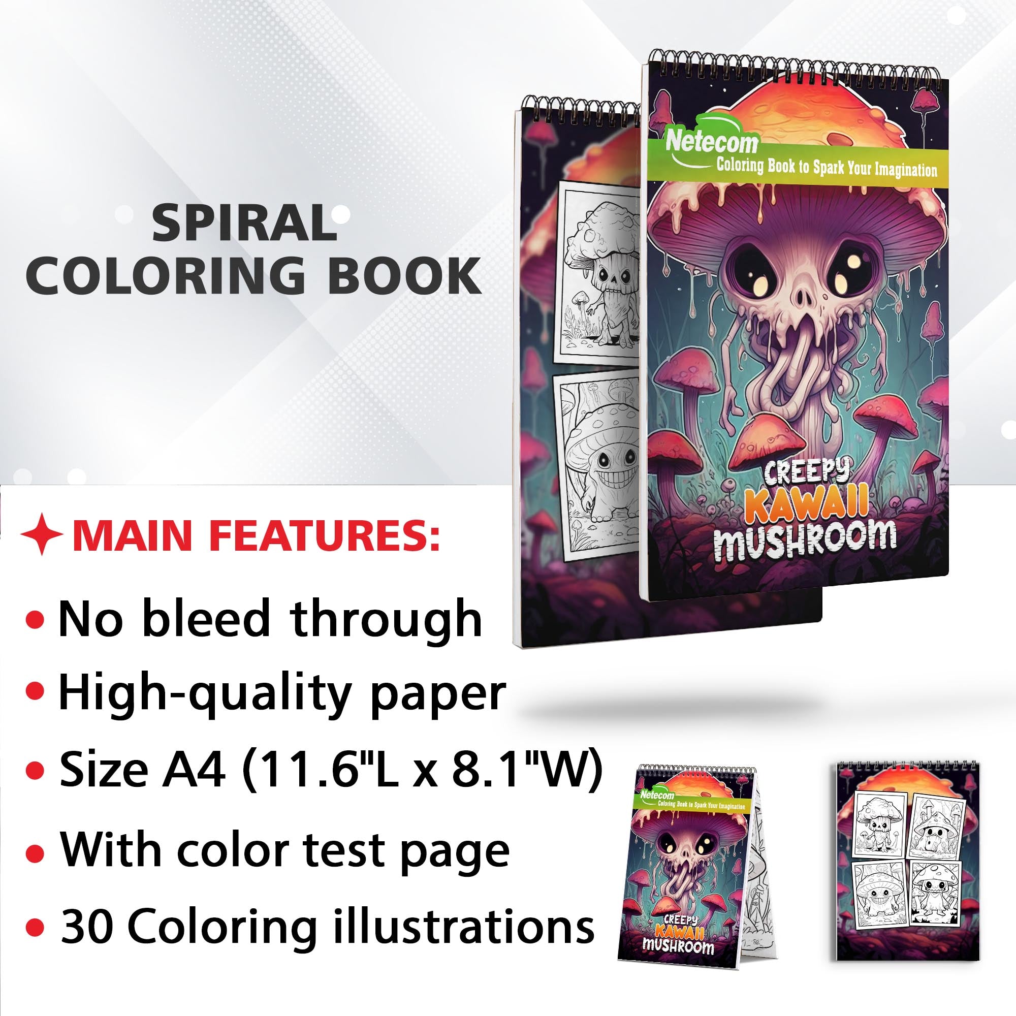 Creepy Kawaii Mushroom Spiral Bound Coloring Book, Celebrate the Charming Peculiarities of Kawaii Mushrooms with 30 Pages of Creepy-Cute Artwork
