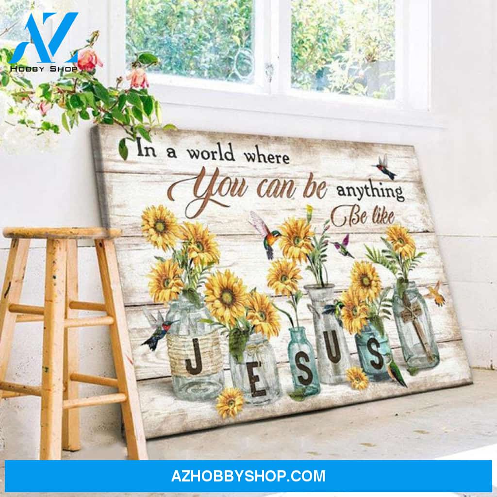 Custom Canvas Jesus In a world where you can be anything be like, Sunflower hummingbird Canvas Wooden Stretcher