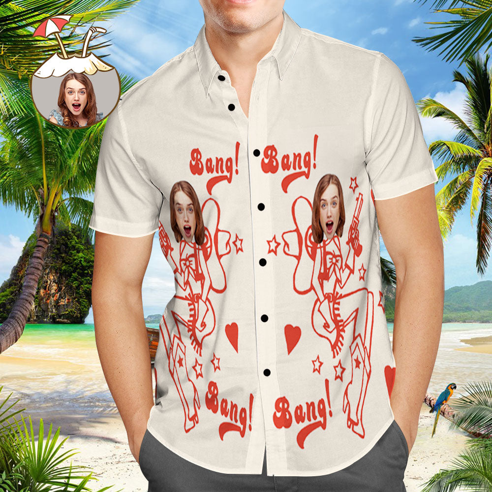 Custom Photo Vintage Hawaiian Shirt with Cowboy Girl, Unisex Summer Essentials