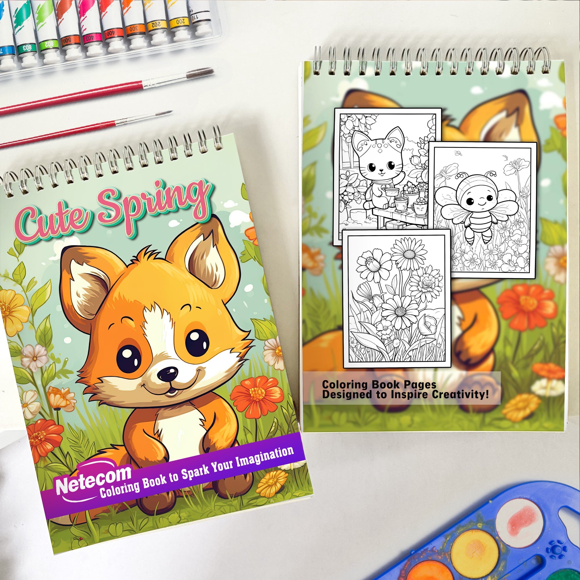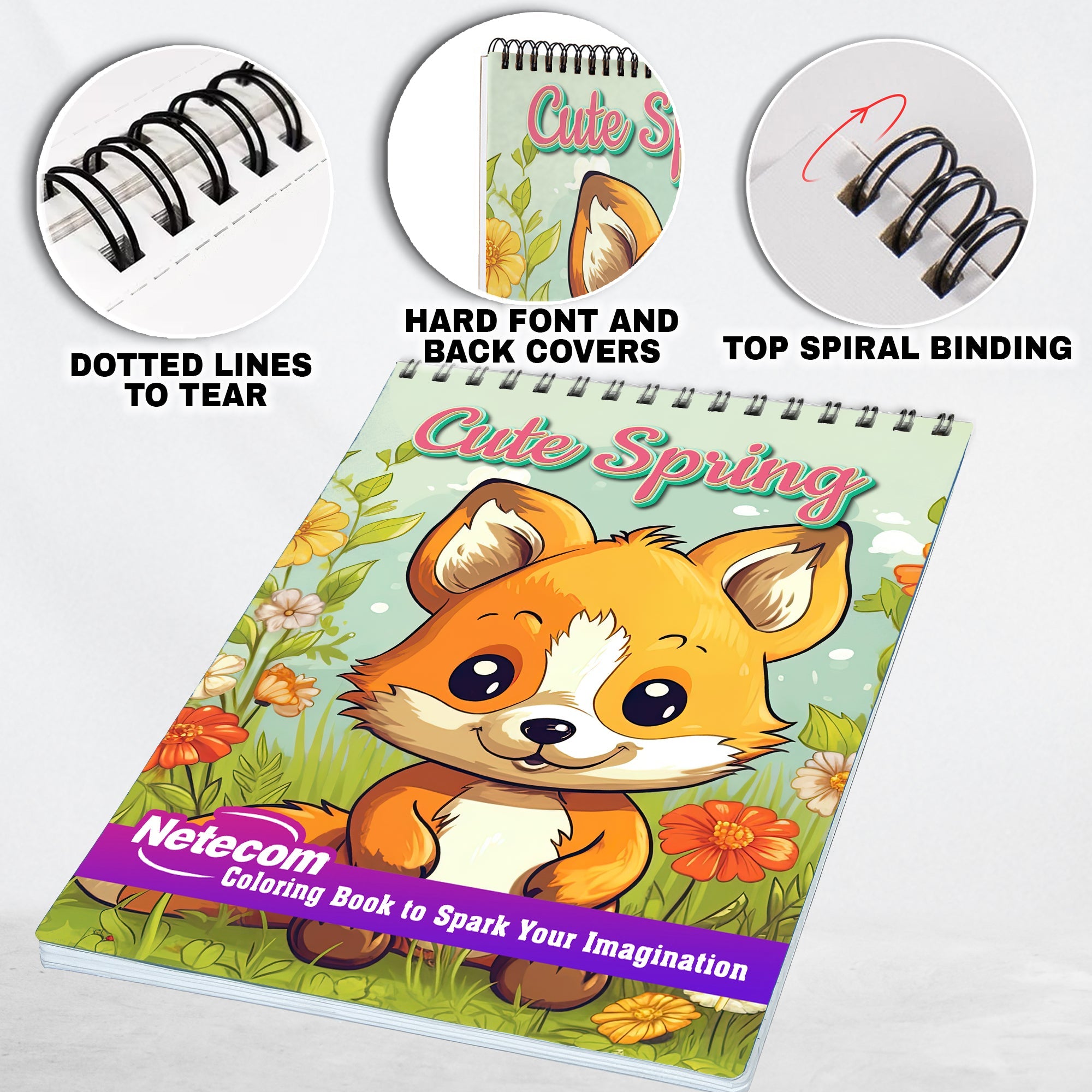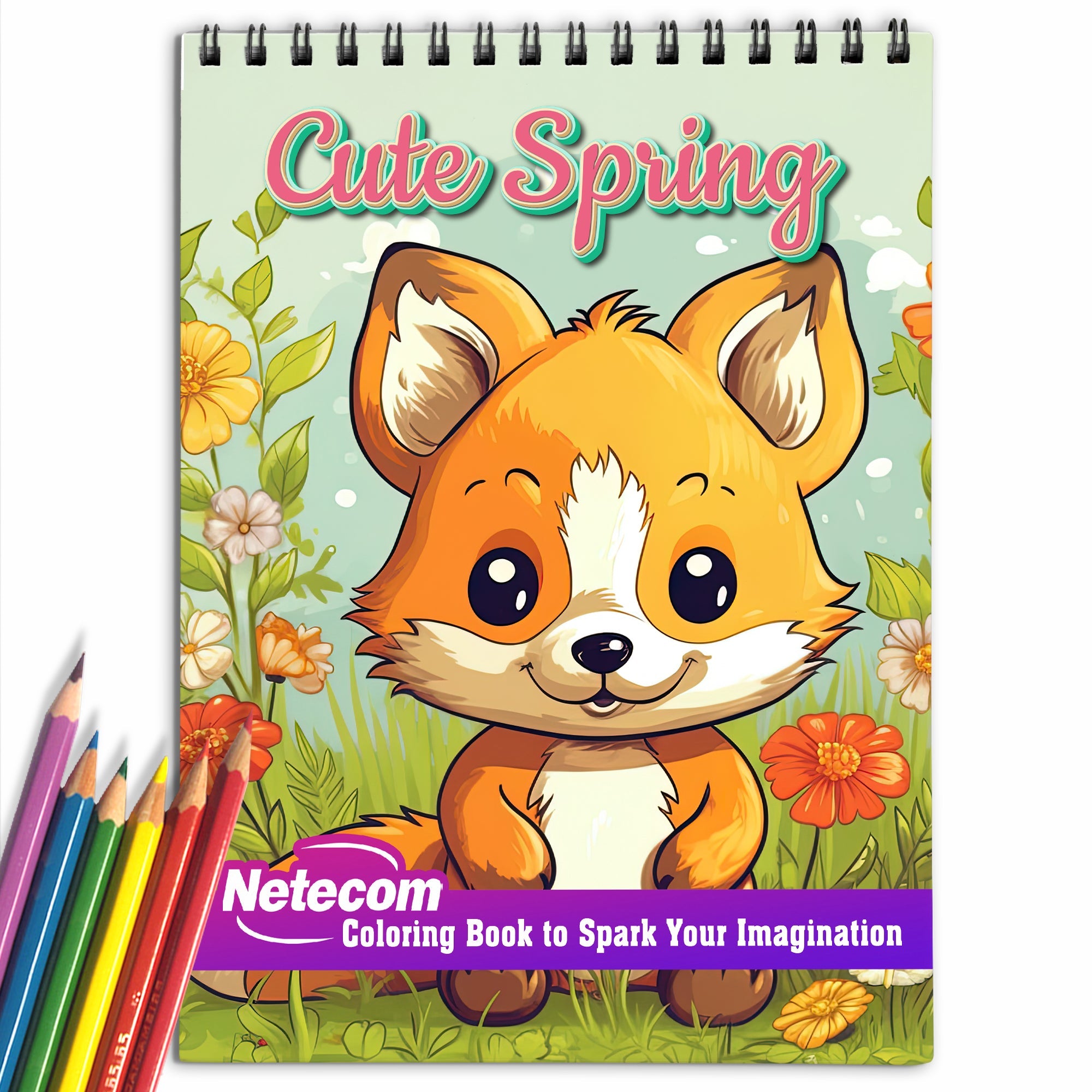 Cute Spring Spiral Bound Coloring Book, Unleash Your Creativity with 30 Coloring Pages, Featuring Charming Illustrations of Cute Characters and Spring Elements