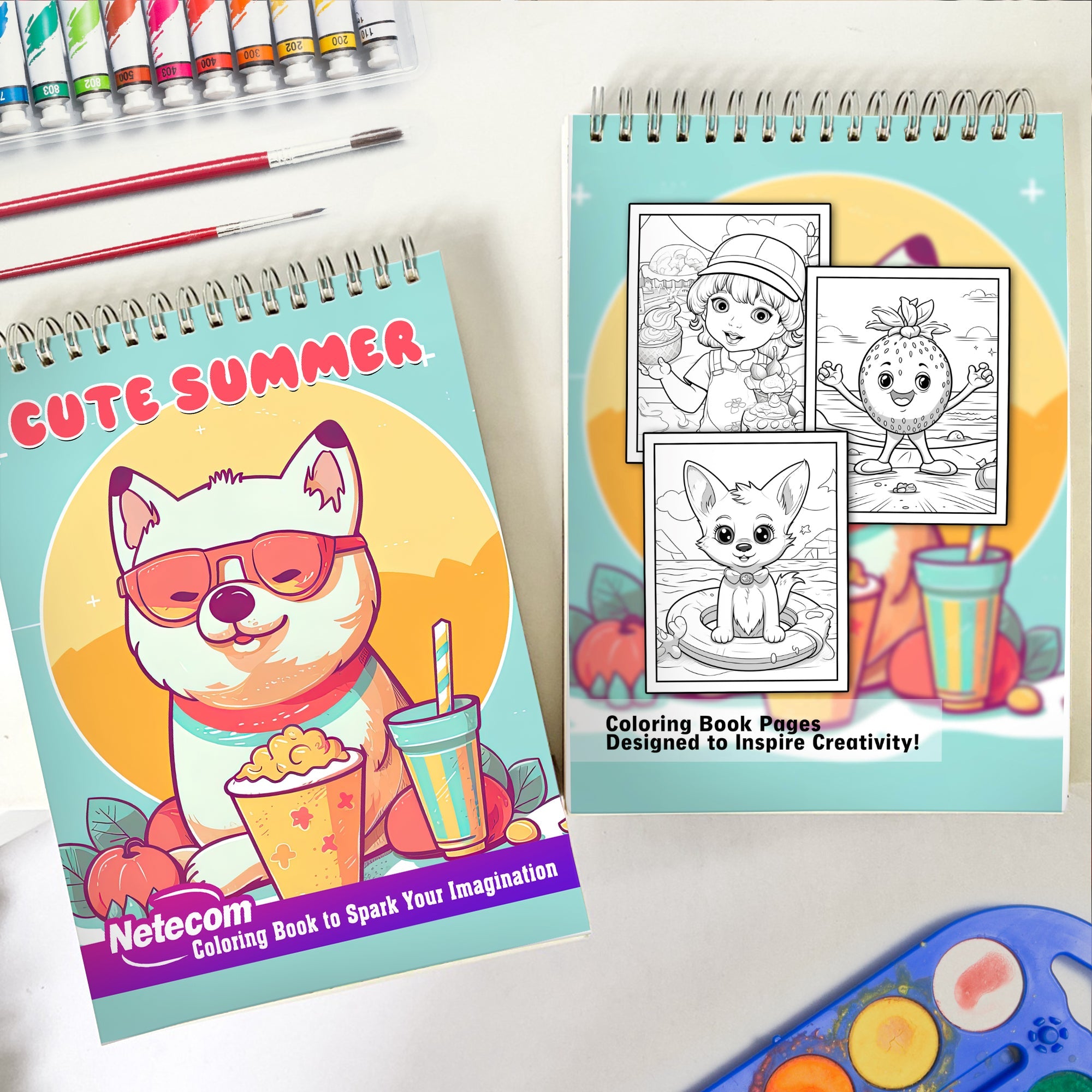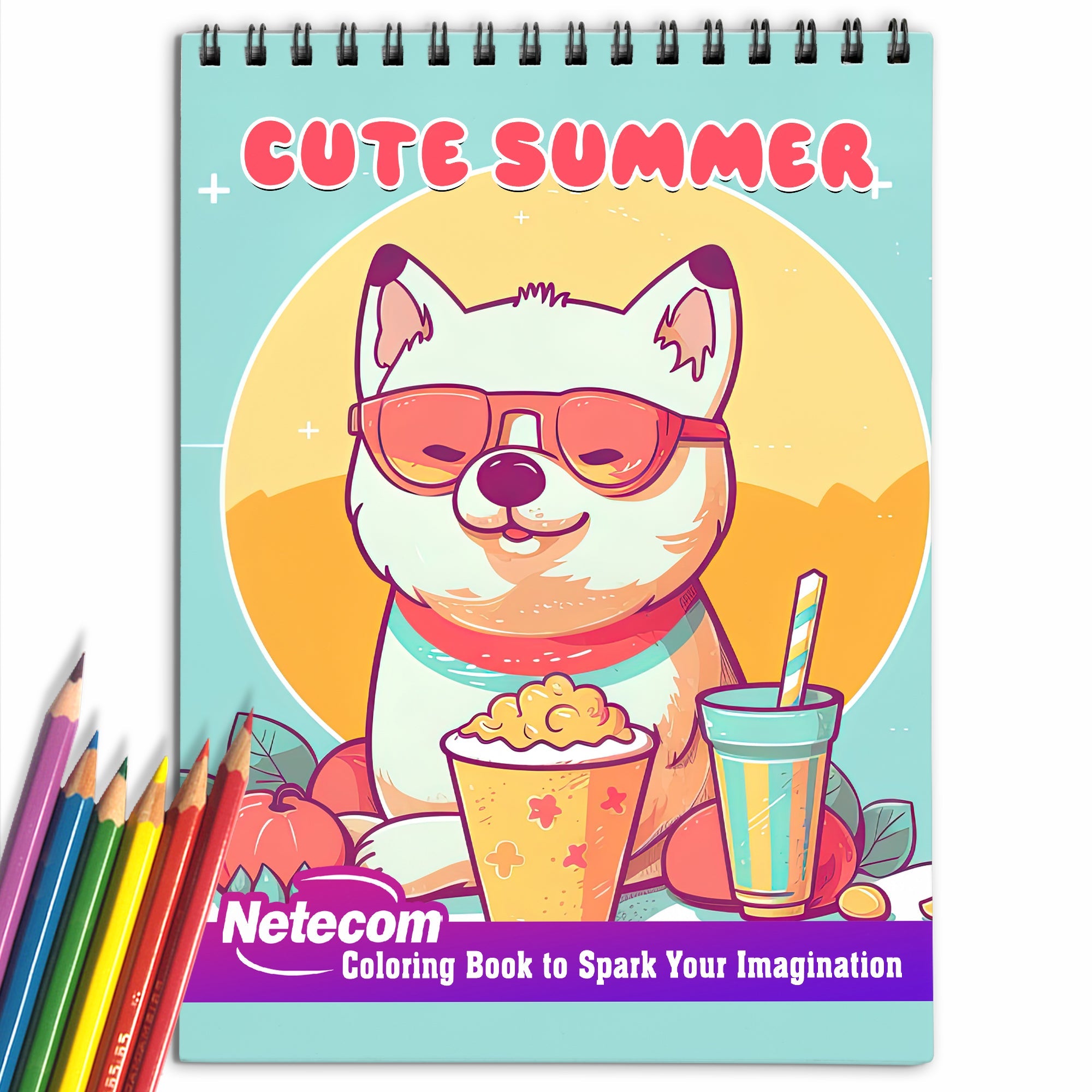 Cute Summer Spiral Bound Coloring Book, Unleash Your Creativity with 30 Coloring Pages, Featuring Cute Illustrations of Summer Activities and Themes