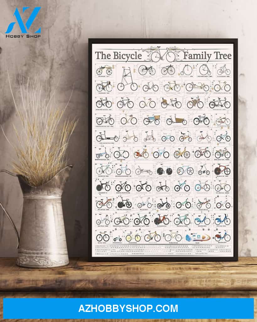 Cycling The Bicycle Family Tree Vertical Canvas Painting, Wall Decor Visual Art