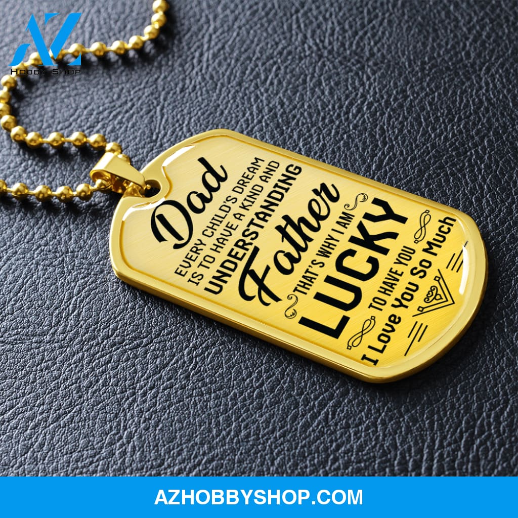 DAD I Am Lucky - Graphical Dog Tag & Ball chain (steel)
