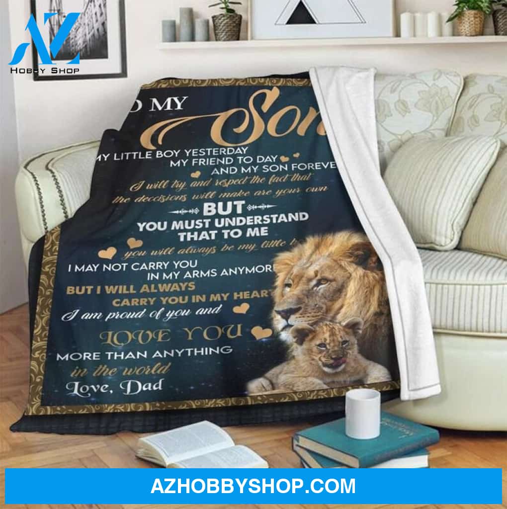 Dad To My Son My Little Boy My Son Forever Lion Blanket Quilt