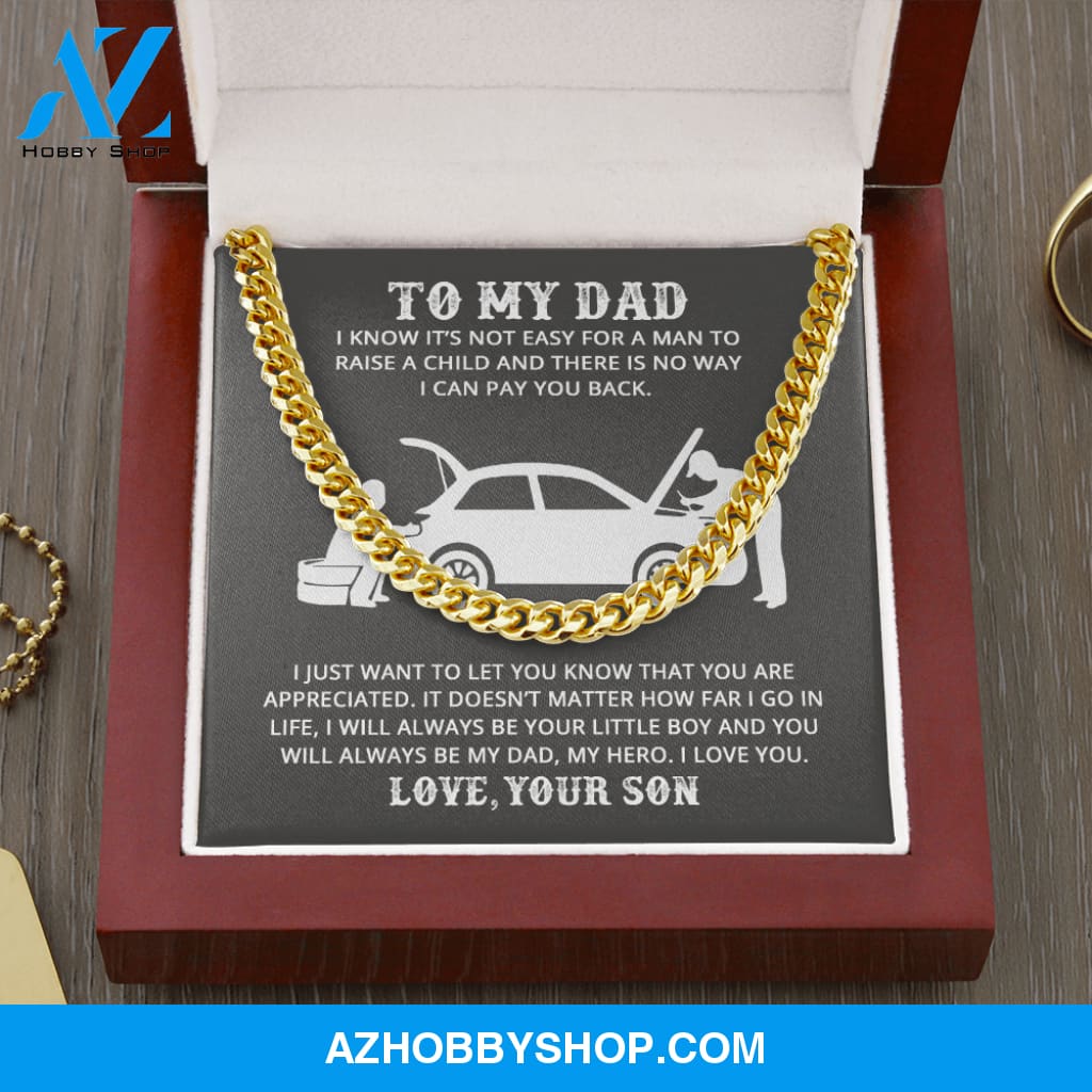 I know it's not easy for a man to raise a child and there is no way I can pay you back. I just want to let you know that you are appreciated. It doesn't matter how far I go in life, I will always be your little boy and you will always be my dad, my hero. I love you.