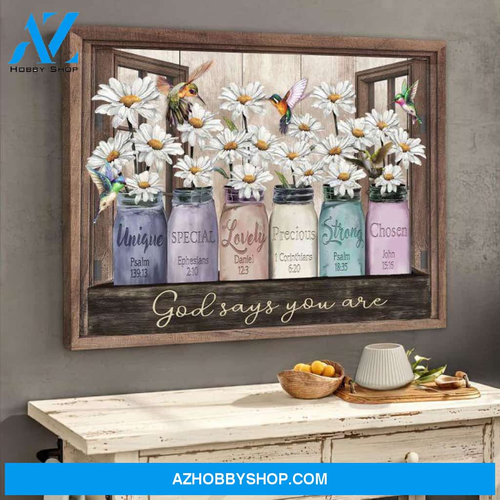 Daisy and Hummingbird, God Says You Are Window Wall Art Poster Canvas Decor Home Decor Wall Art Visual Art