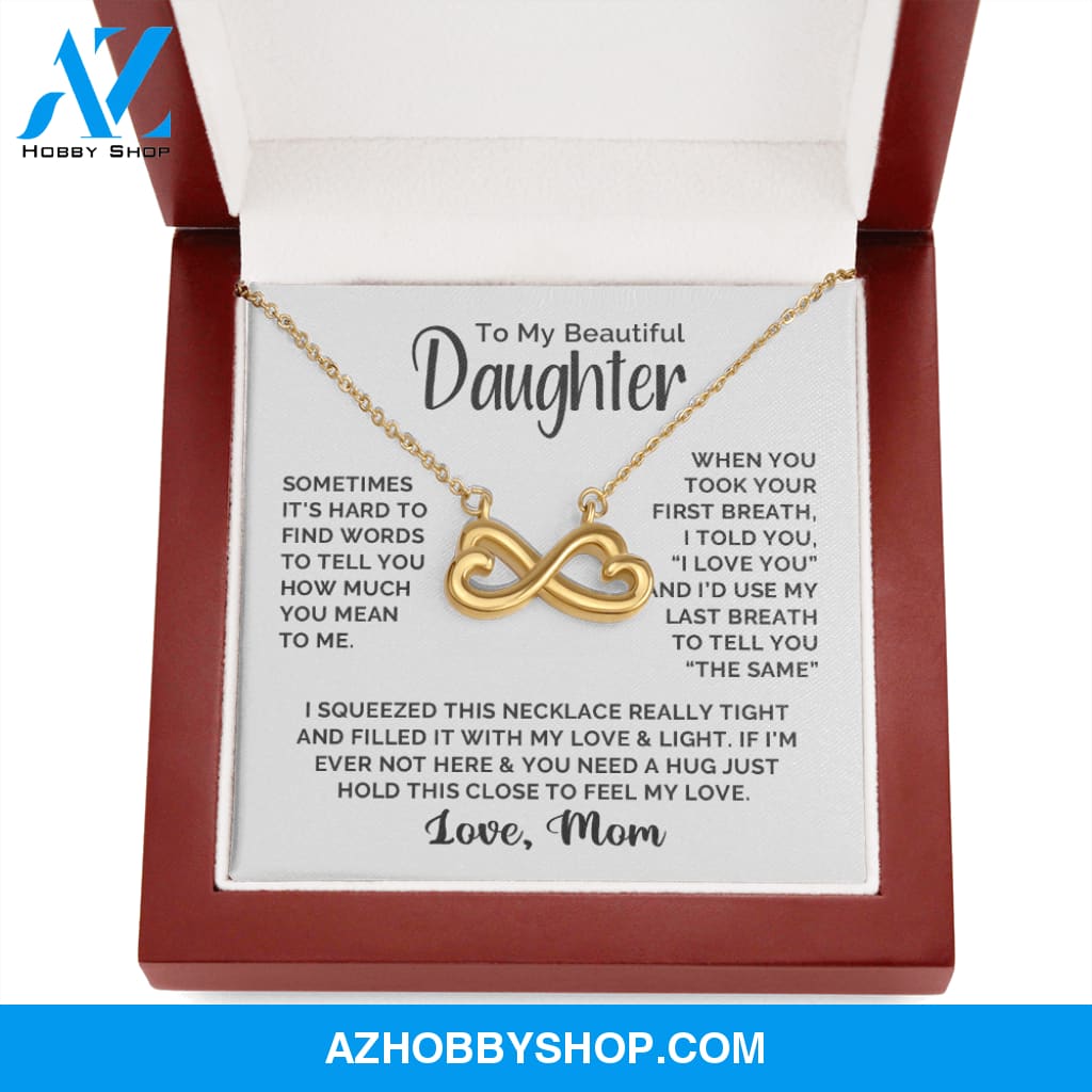 Sometimes it's hard to find words to tell you how much you mean to me. When you took your first breath, I told you, I LOVE YOU and I'd use my last breath to tell you the same. I squeezed this necklace really tight and filled it with my love & light. If I'm ever not here & you need a hug just hold this close to feel my love.