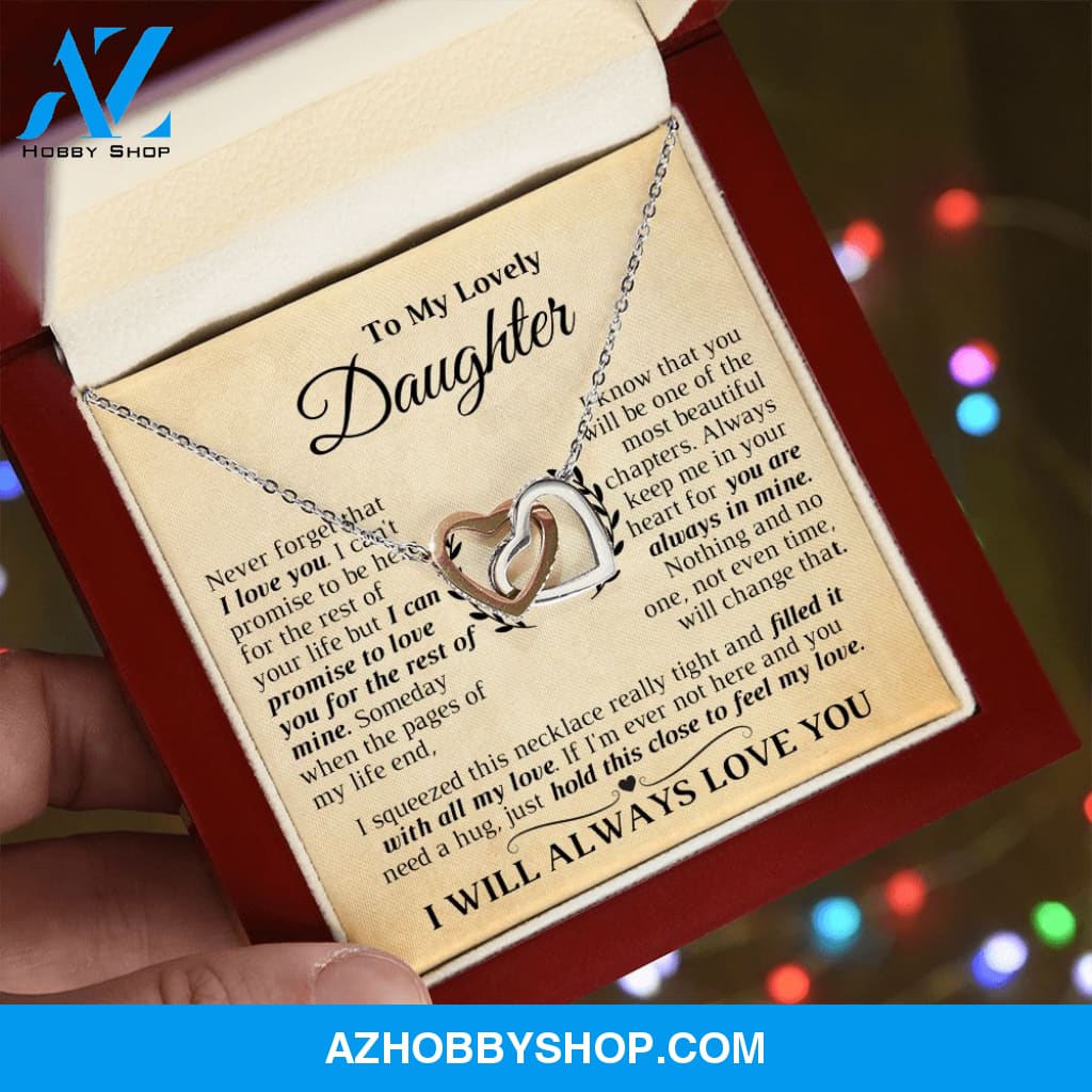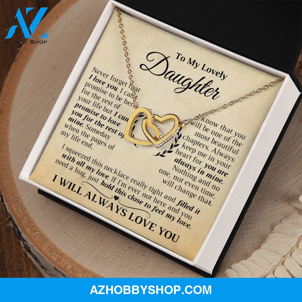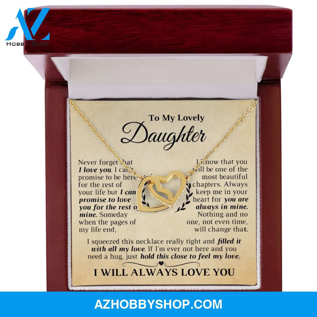 "Never forget that I love you. I can't promise to be here for the rest of your life but I can promise to love you for the rest of mine. Someday when the pages of my life end, I know that you will be one of the most beautiful chapters. Always keep me in your heart for you are always in mine. Nothing and no one, not even time, will change that. I squeezed this necklace really tight and filled it with all of my love. If I'm ever not here and you need a hug, just hold this close to feel my love."