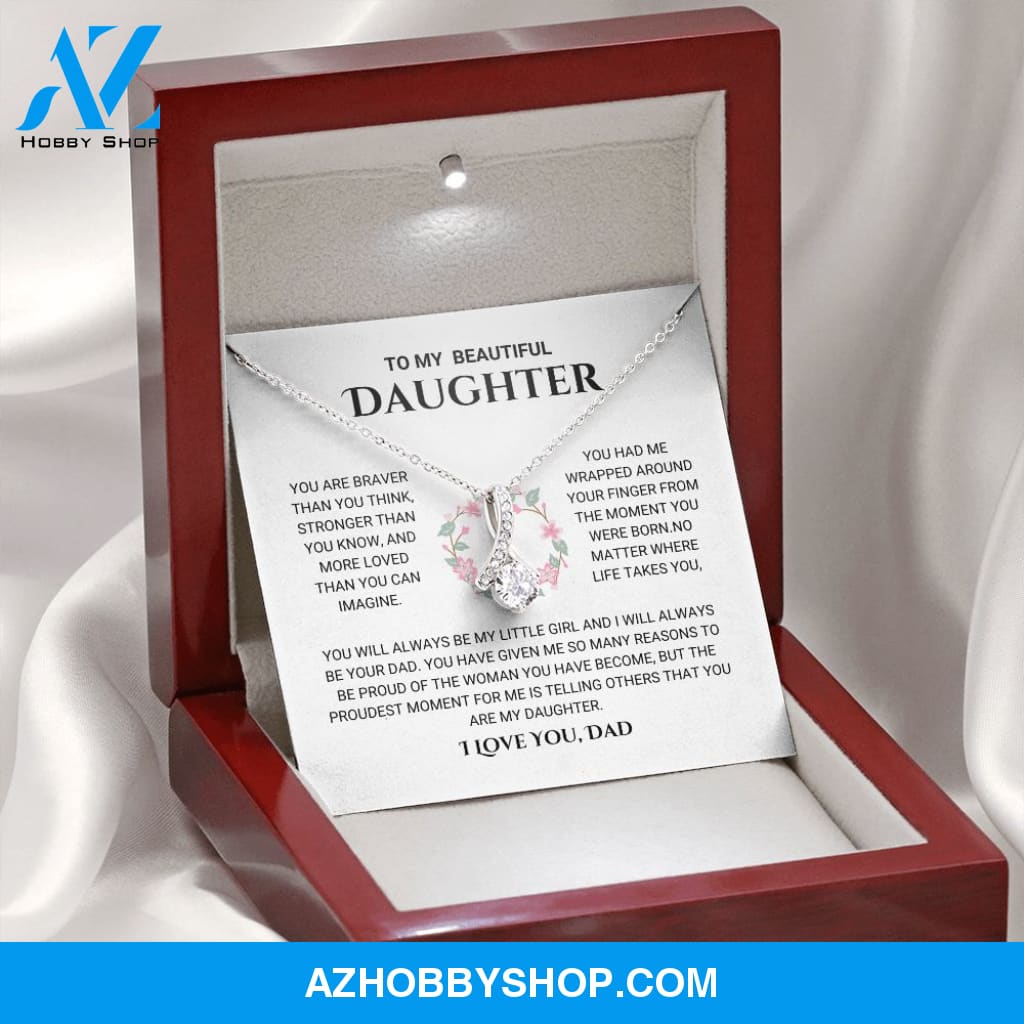 Melt her heart with this ALLURING BEAUTY necklace gift! The petite ribbon shaped pendant is finished with 14K white gold over stainless steel, and is embellished with dainty clear crystals surrounded by a sparkling 7mm round cut Cubic Zirconia.