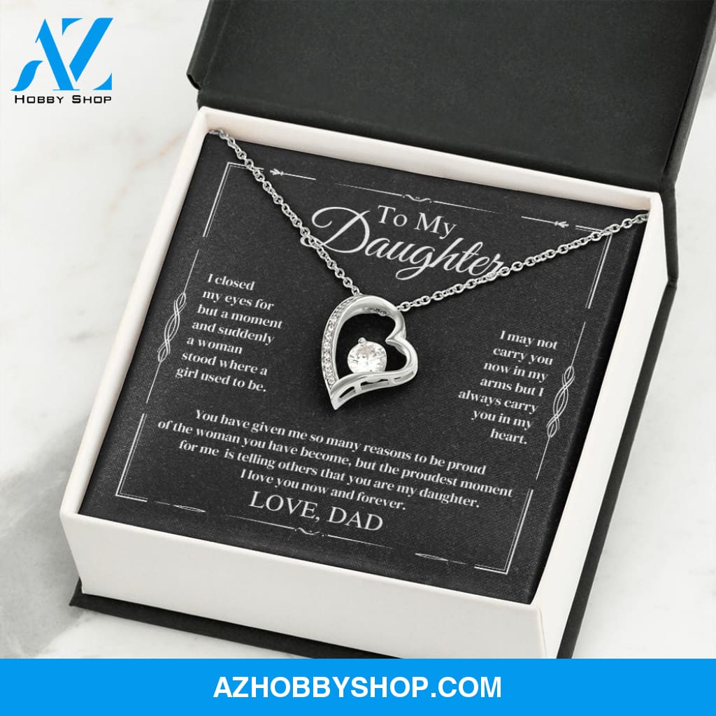 This dazzling Forever Love Necklace features a polished heart pendant surrounding a flawless 6.5mm cubic zirconia, embellished with smaller crystals adding extra sparkle and shine.