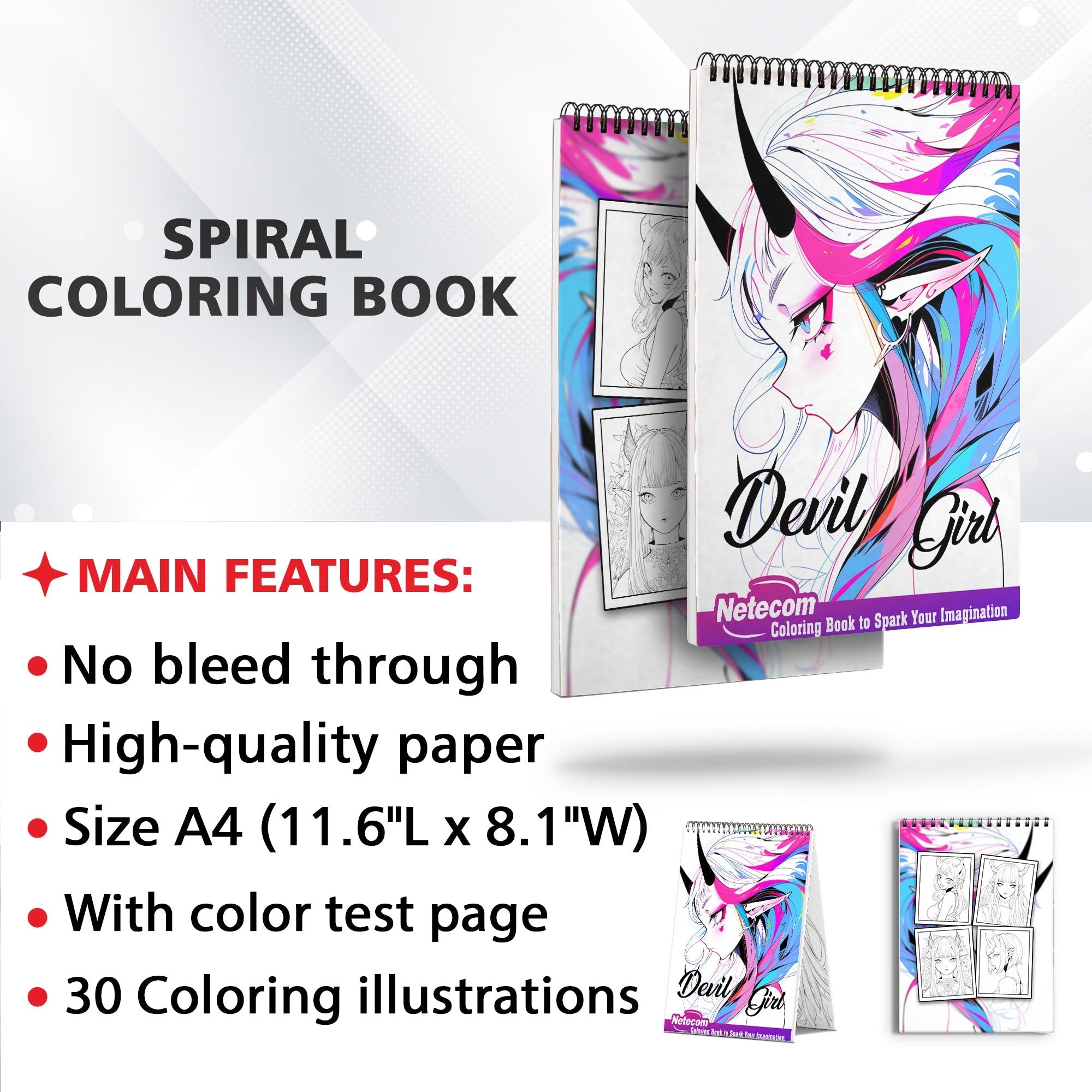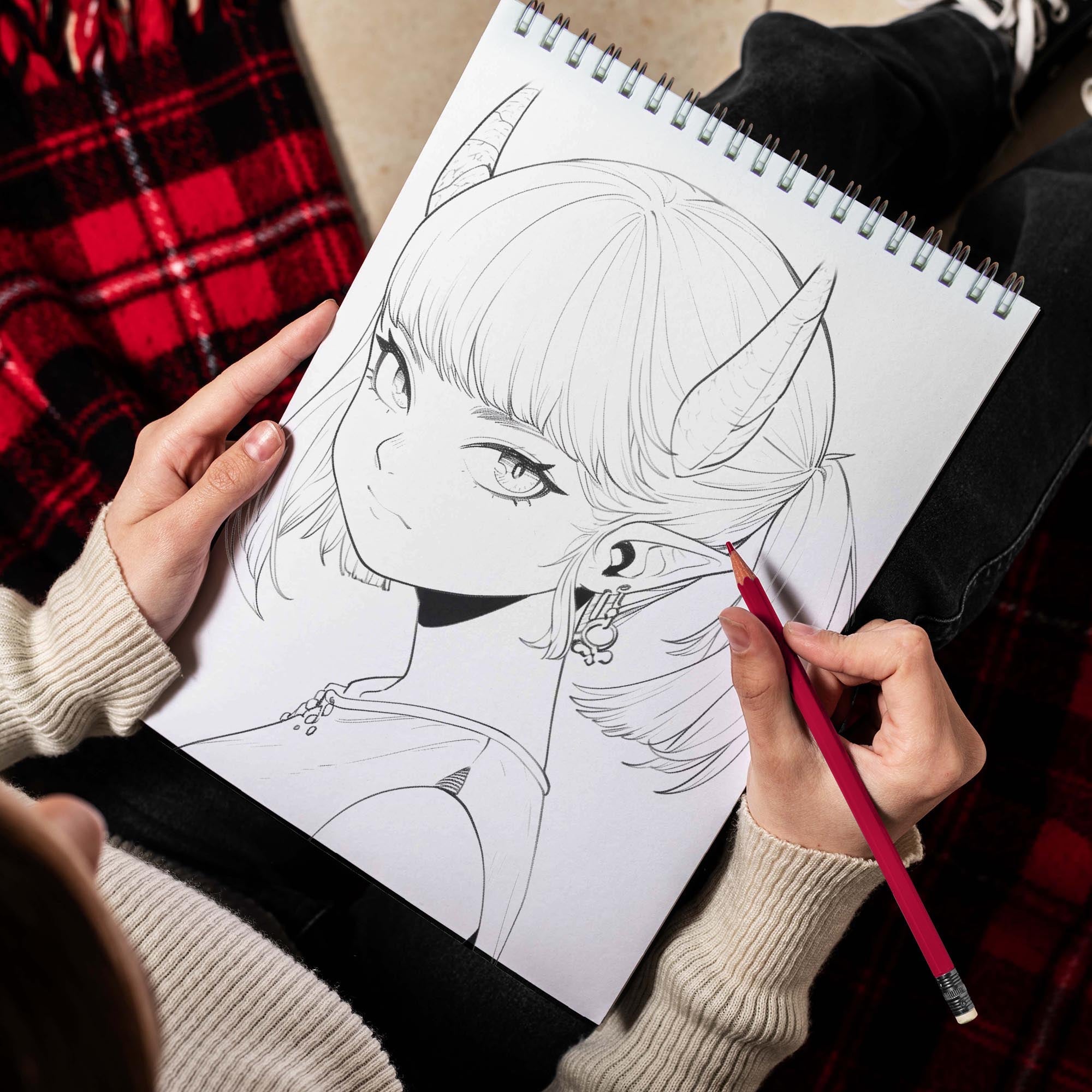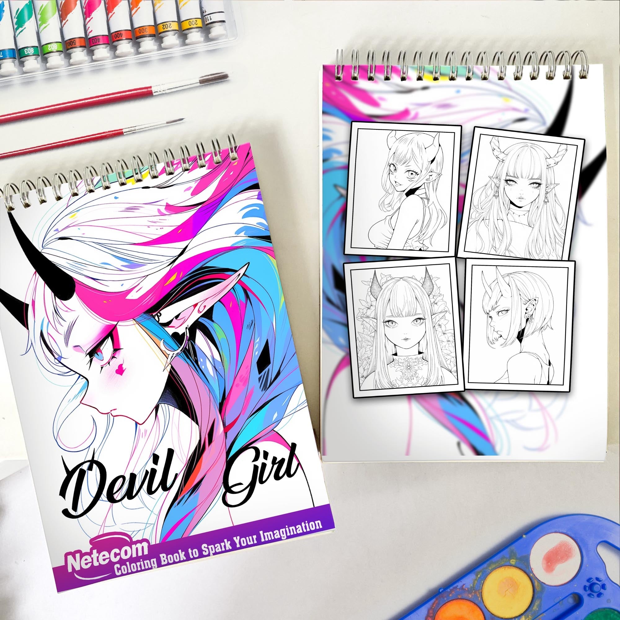 Devil Girl Spiral Bound Coloring Book, Dive into a World of Anime with 30 Mesmerizing Coloring Pages, featuring Devilish and Alluring Girls