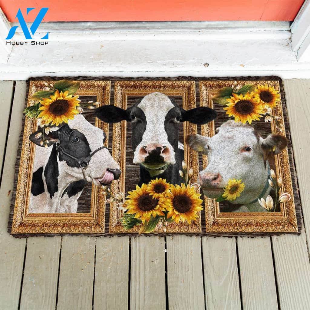 Dog Doormat 3D Cow Sunflower Custom Doormat