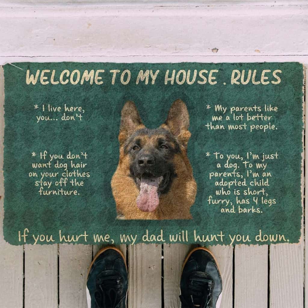 Dog Doormat 3D German Shepherd Welcome To My House Rules Custom Doormat