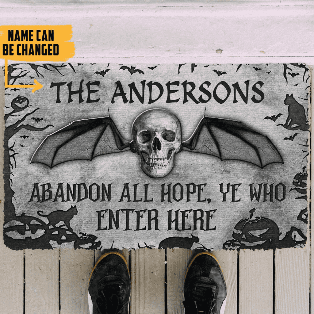 Dog Doormat 3D Skull Skeleton Goth Family Halloween Custom Name Doormat