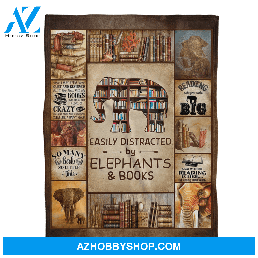 Easily Distracted By Elephants And Books Blanket Gift For Elephant Lovers Birthday Gift Home Decor Bedding Couch Sofa Soft and Comfy Cozy