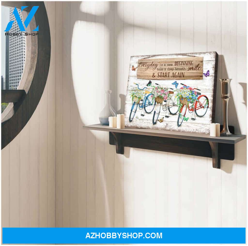 Everyday is a new beginning Bicycle and Butterflies Canvas Wall Art Decor