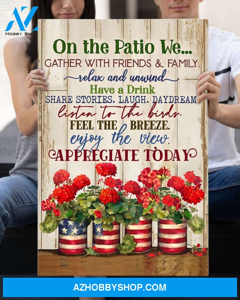 Eviral Stores Hippie Gardening On The Patio Geraniums Wall Art Canvas Poster