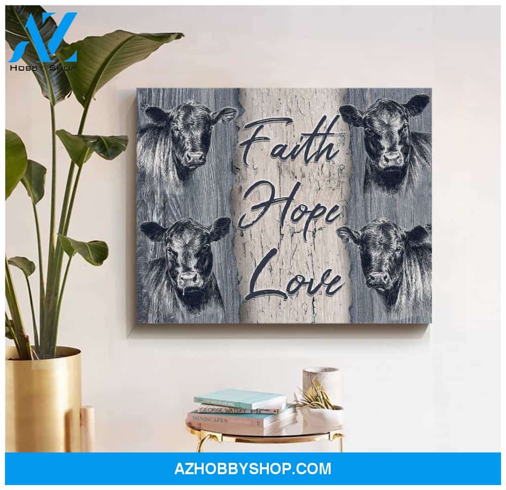 Farm Angus Cows Faith Hope Love Canvas Wall Art Decor