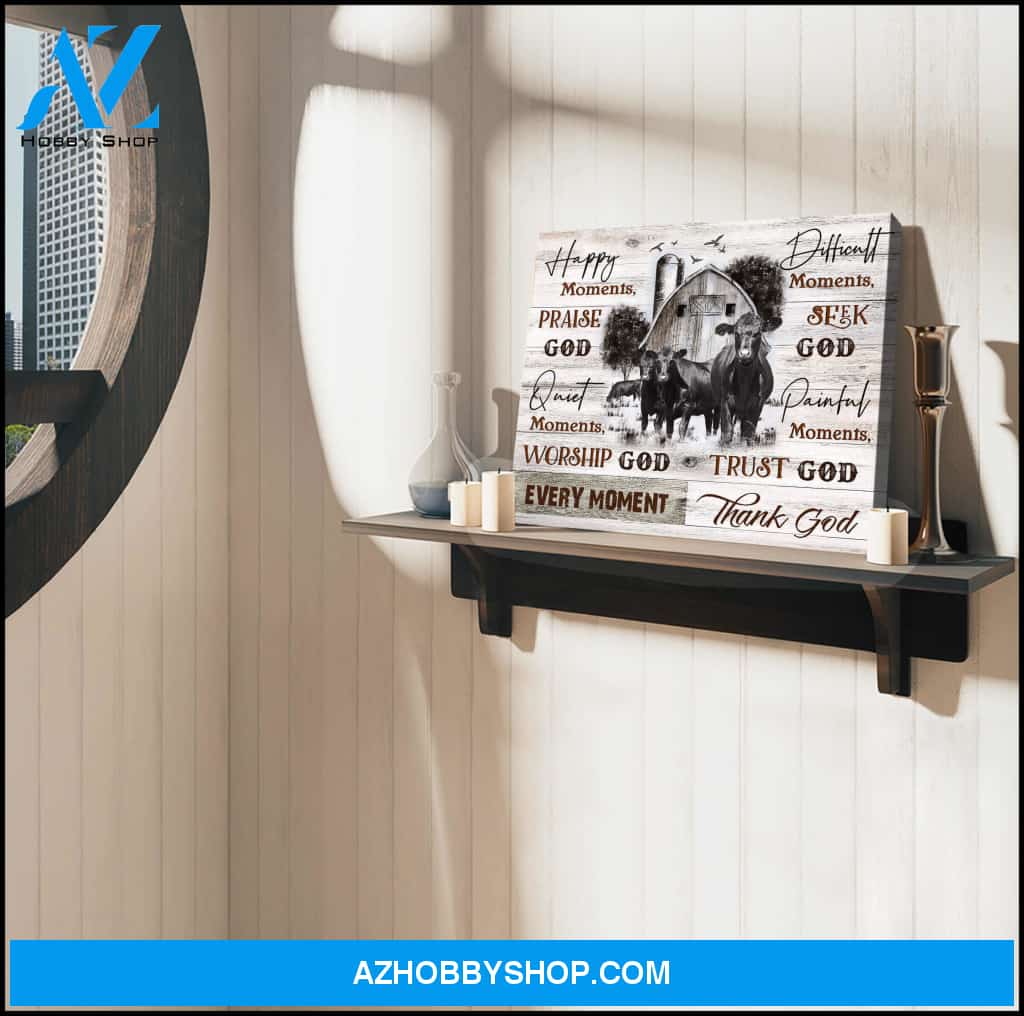 Farm Farmhouse Angus cows Canvas Every moment, Thank God Wall Art Decor