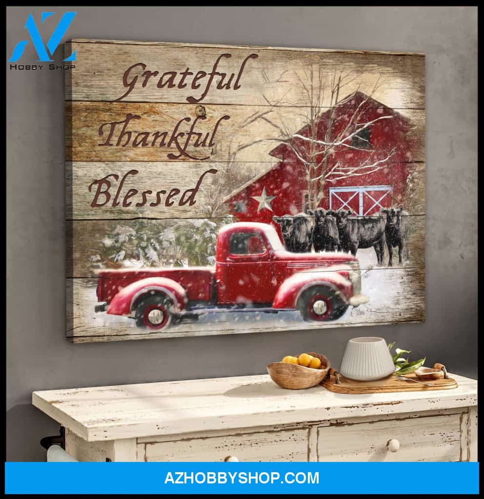 Farm Farmhouse Angus Cows Grateful Thankful Blessed Canvas Wall Art Decor