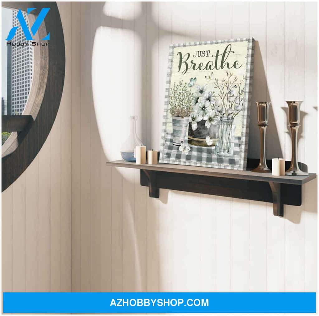 Farm Farmhouse Cotton Flowers and Butterflies Just Breathe Canvas Wall Art Decor
