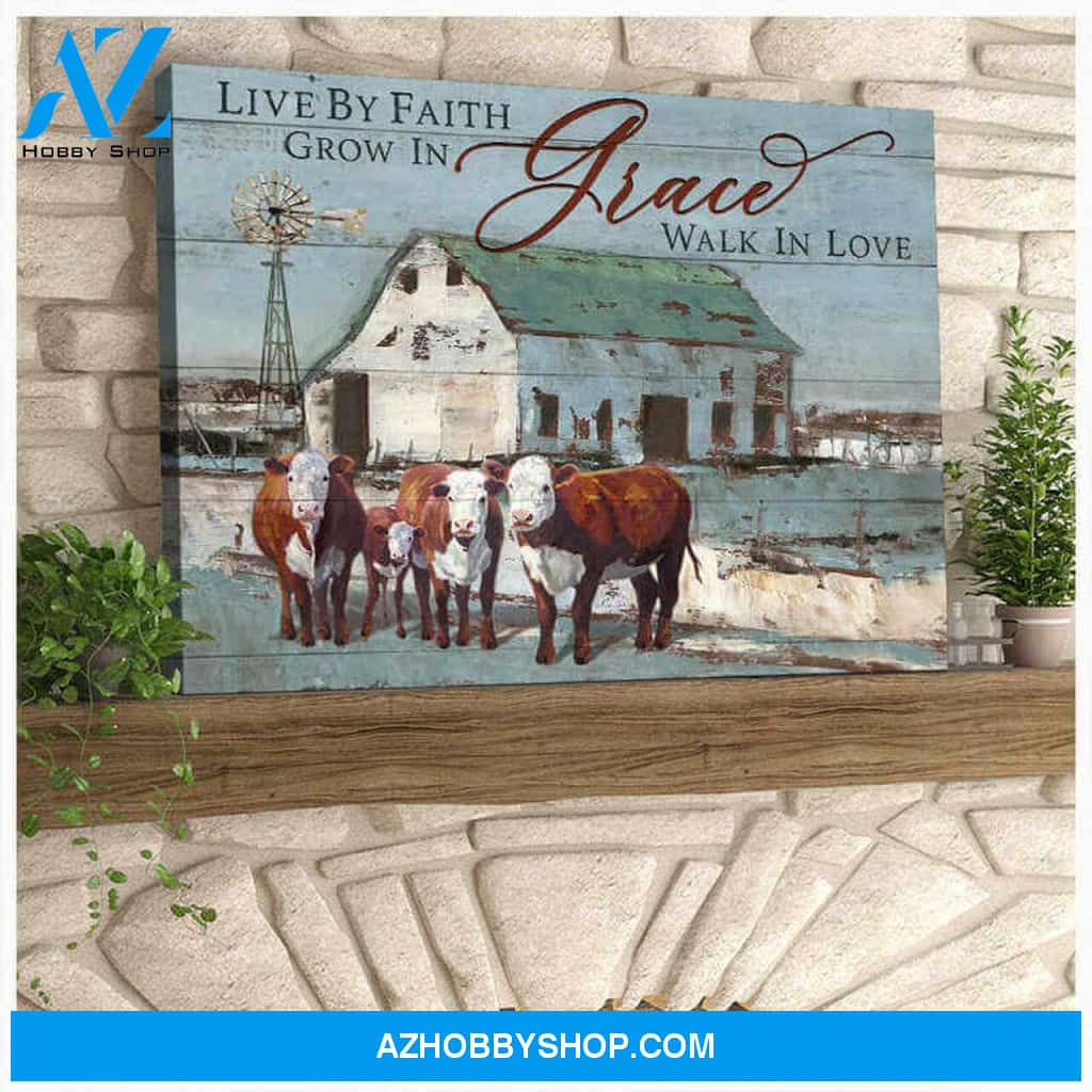 Farm Farmhouse Hereford Cows Canvas Live By Faith Canvas Poster