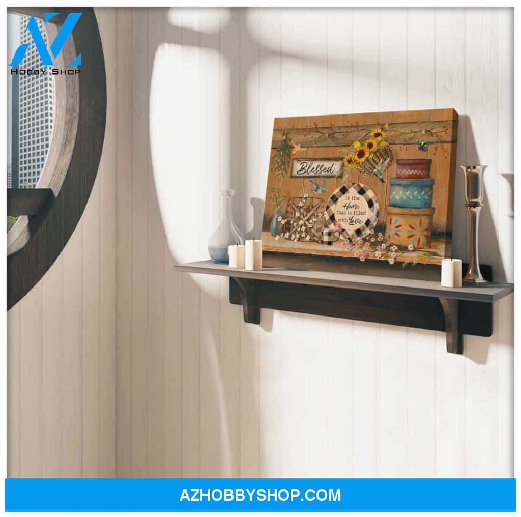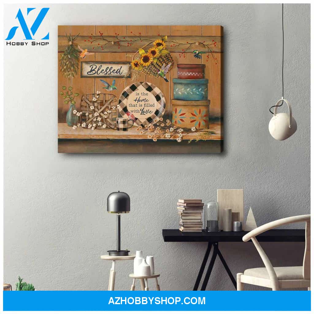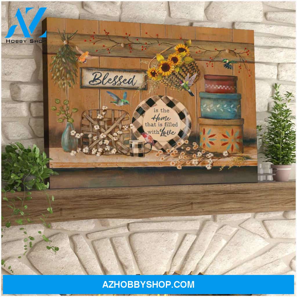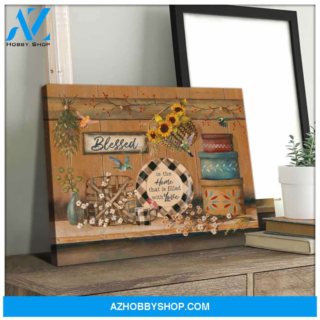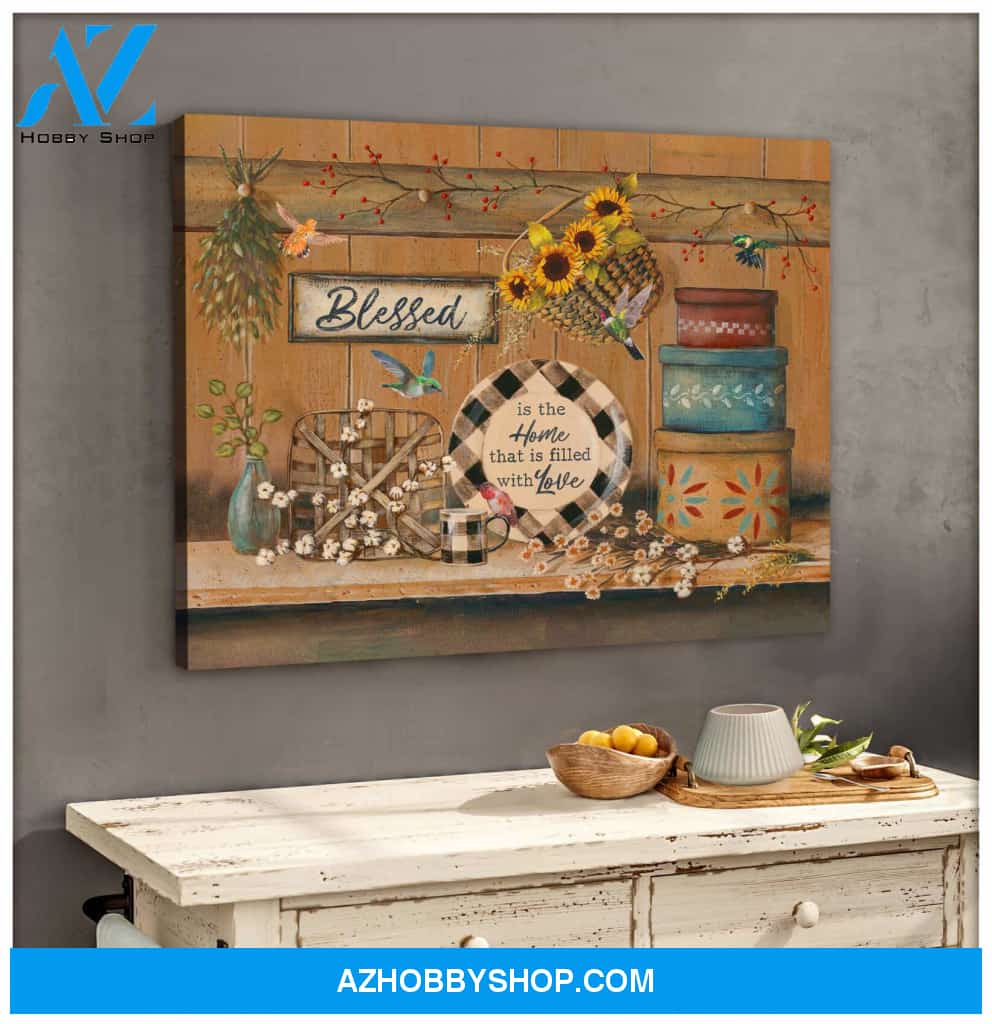 Farm Farmhouse Hummingbird Blessed is the home that is filled with love Canvas Wall Art Decor
