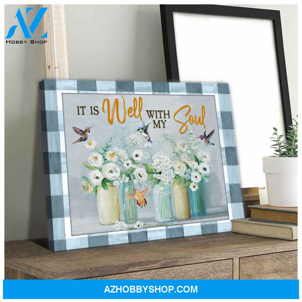 Farm Farmhouse Hummingbirds It is well with my soul Canvas Wall Art Decor