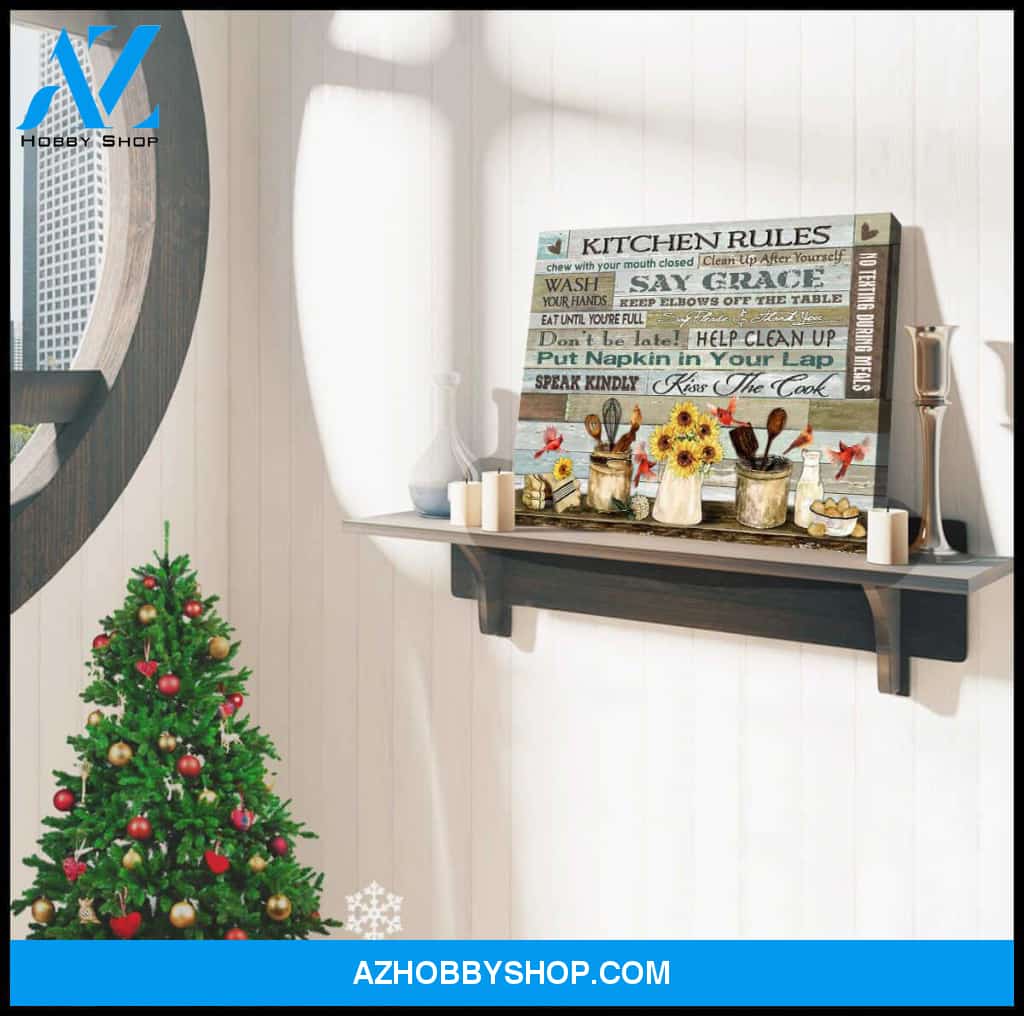 Farm Farmhouse Kitchen and Cardinal Canvas Kitchen Rules Wall Art Decor