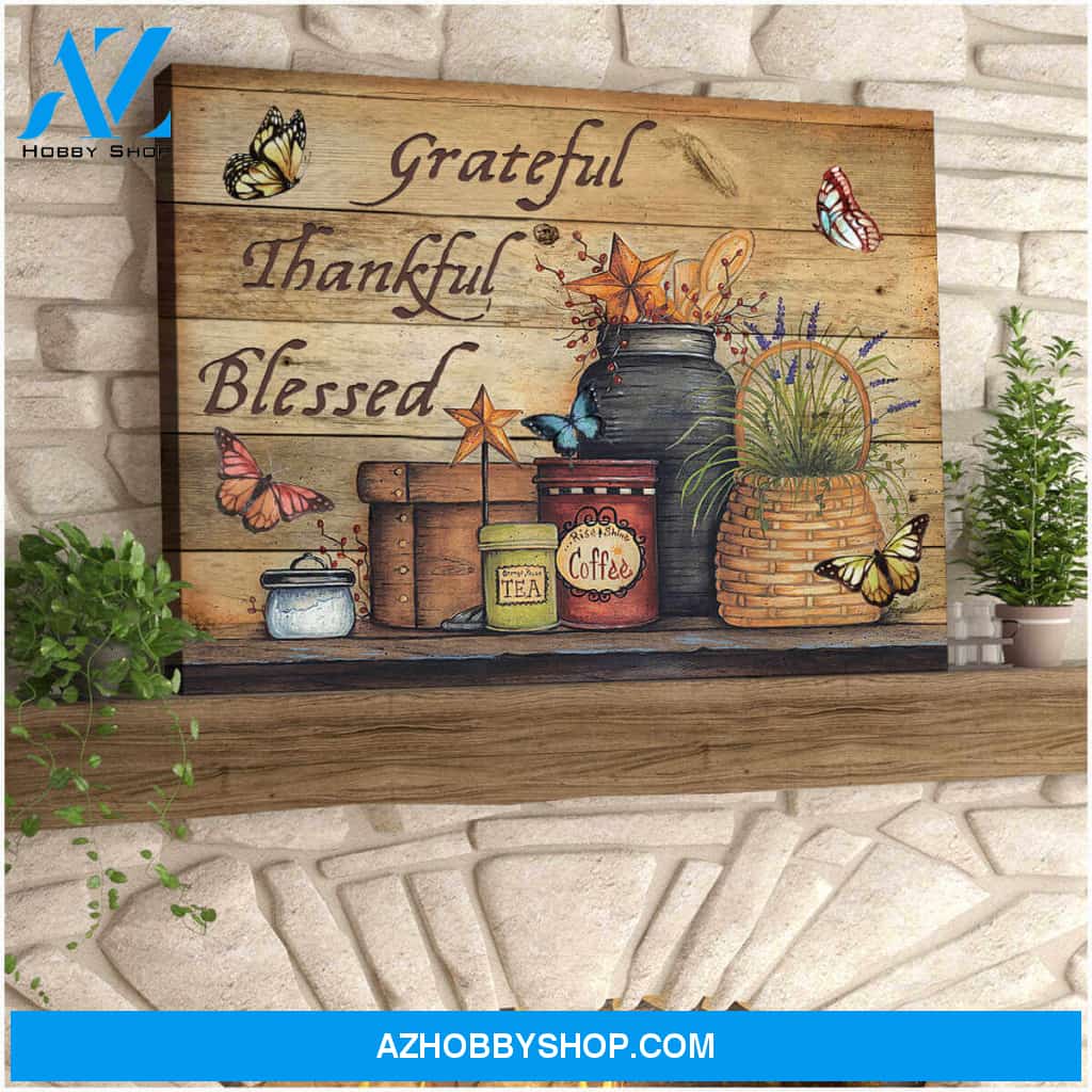 Farmhouse Butterflies Grateful Thankful Blessed Canvas