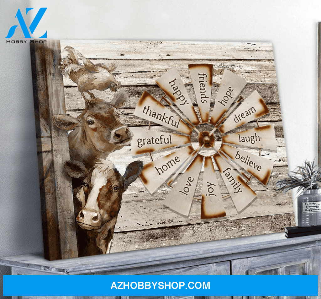 Farmhouse Cow And Chicken Poster Windmill Barn Wall Art, Wall Decor