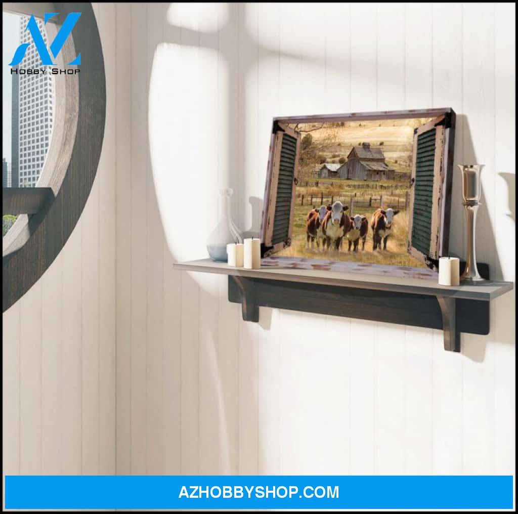 Farmhouse Window Barn With Hereford Cows Canvas And Poster