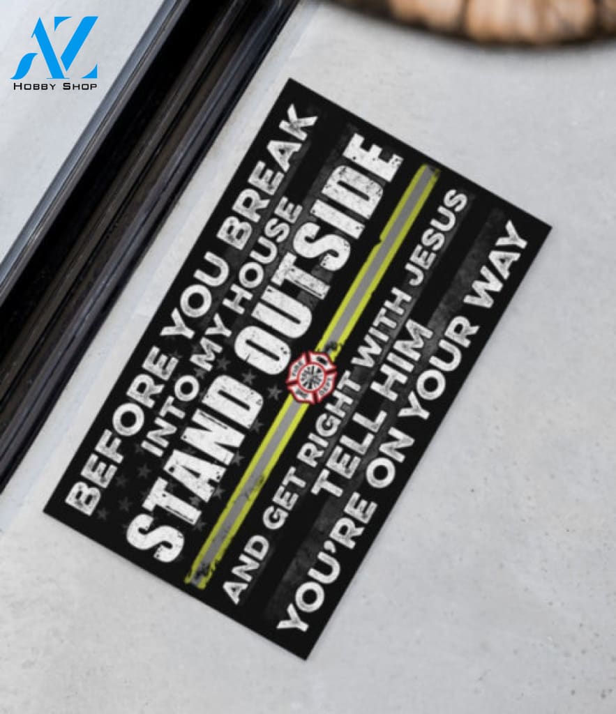 Firefighter Before You Break Into My House Stand Outside And Get Right With Jesus Tell Him Youre On The Way Doormat