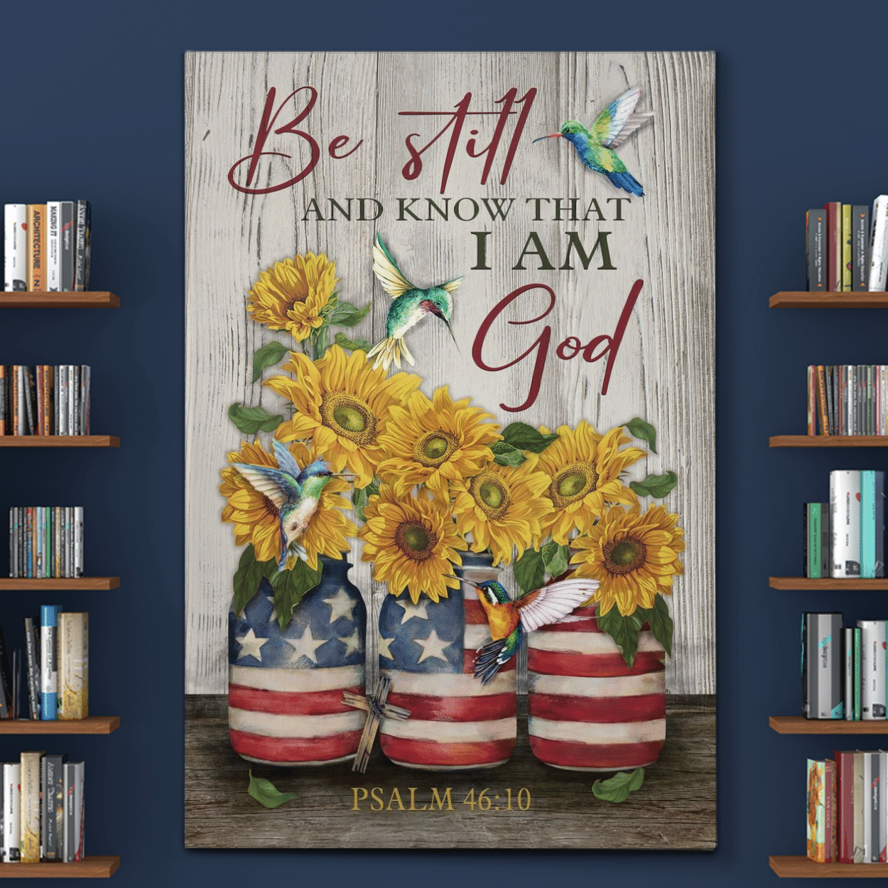 Flag 4th July Hummingbird and sunflower Be still and know that I am God Canvas And Poster