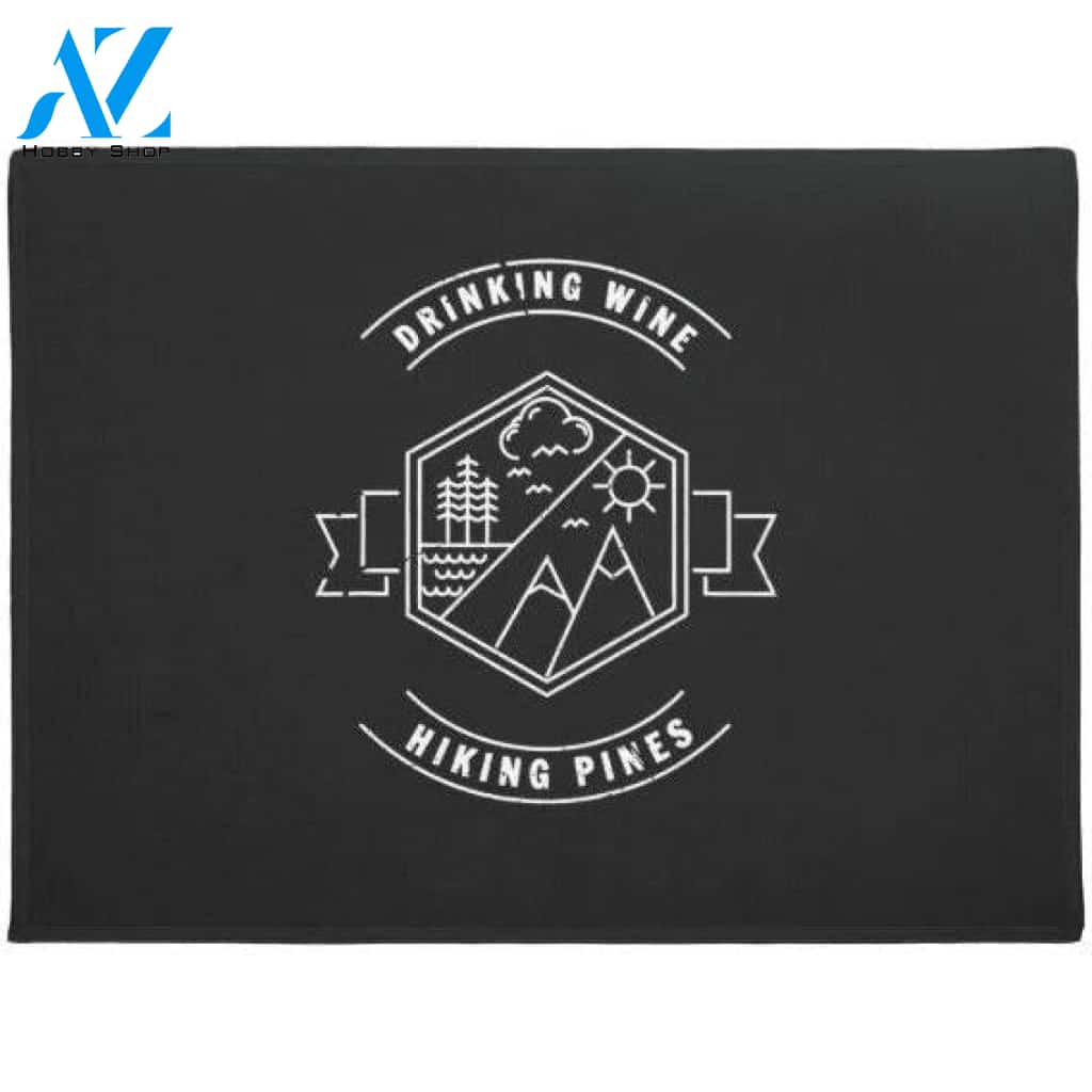 Funny Drinking Wine & Hiking Pines Doormat
