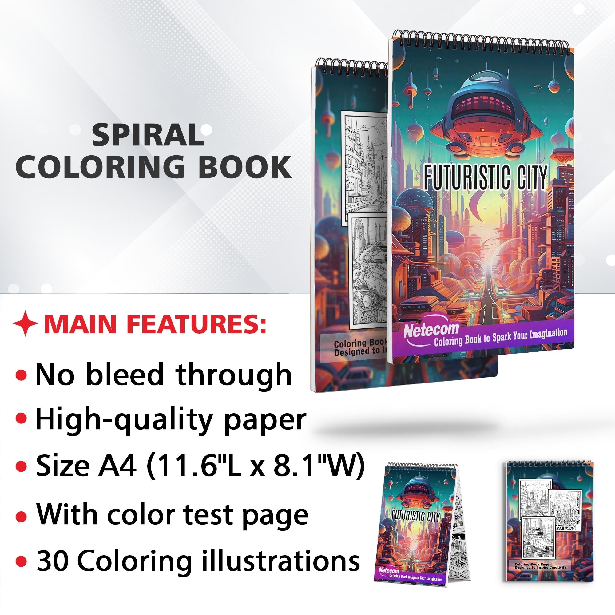 Futuristic City Spiral Bound Coloring Book, Discover the Spectacular Architecture with 30 Exquisite Futuristic City Coloring Pages for Fans of Technological Marvels to Bring the Cityscapes to Life