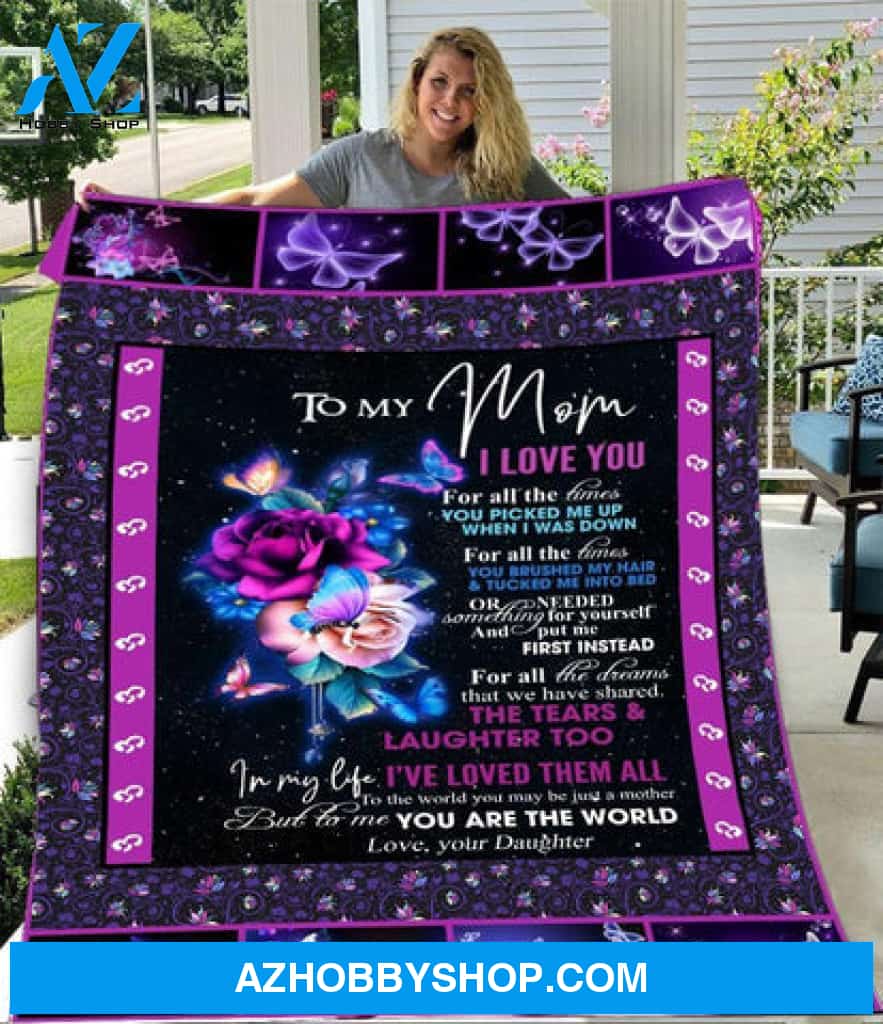 Gift For Mother Blanket, Galaxy Roses Butterfly To My Mom I Love You You Are The World Love Your Daughter Fleece Blanket