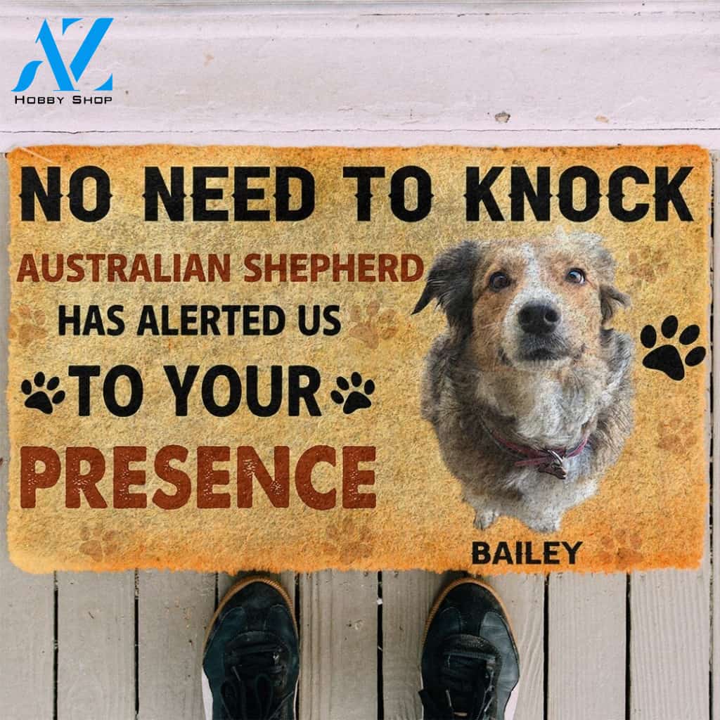 No Need To Knock Australian Shepherd Custom Name Doormat