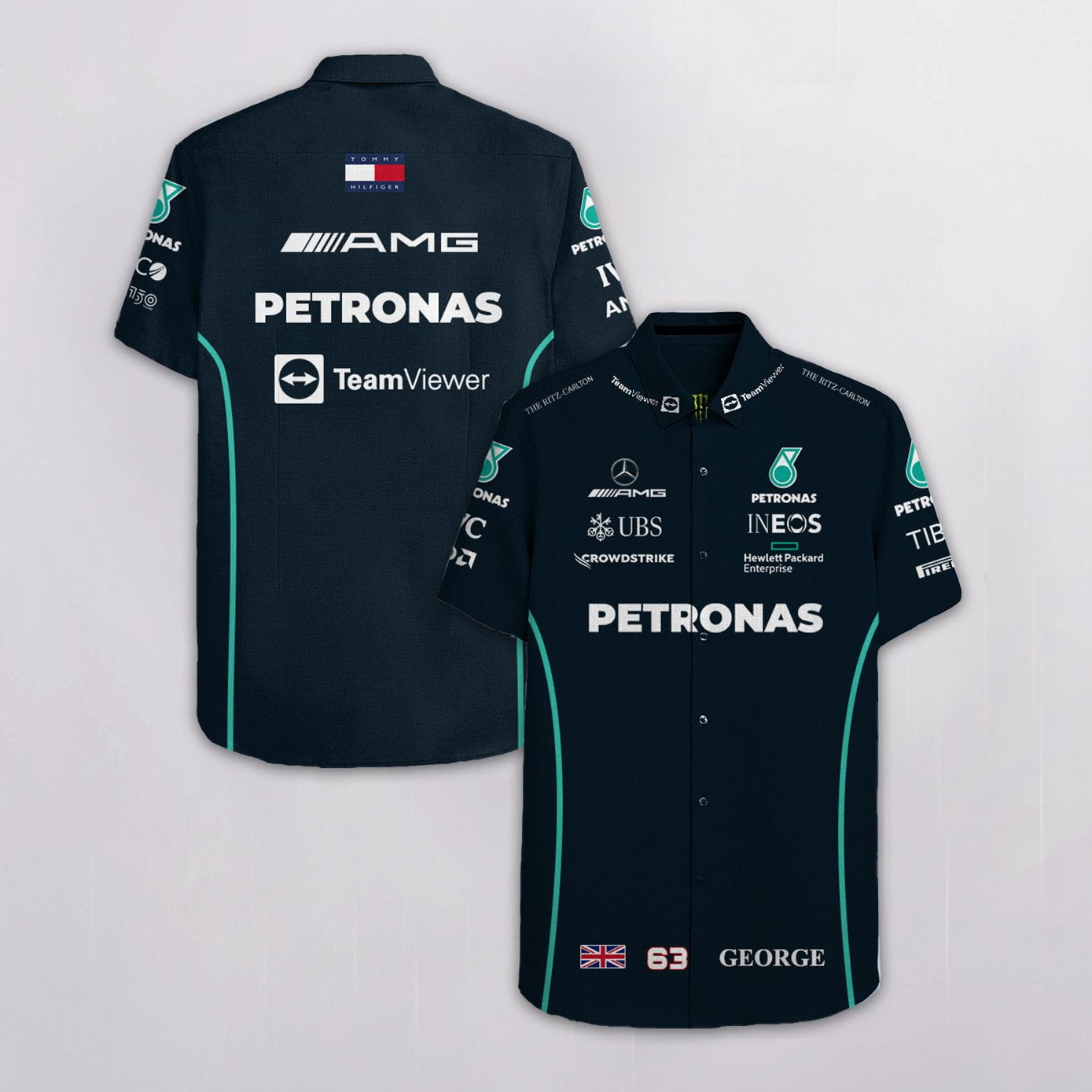 George Russell 63 Mercedes AMG Petronas F1 Team Racing Team Viewer Ubs All Over Print 3D Hawaiian Shirt