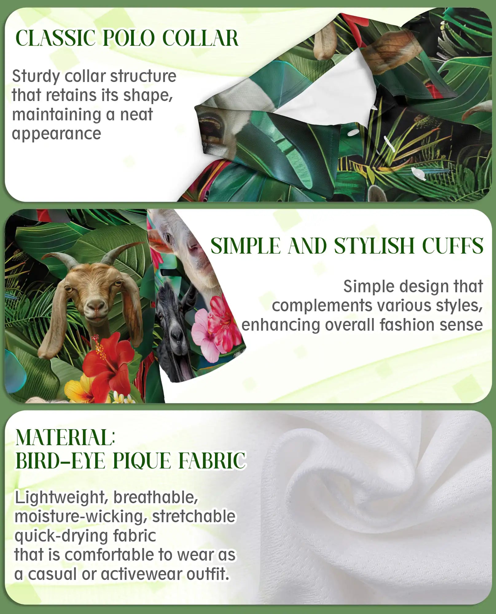 Make people smile with this funny goat tropical polo shirt featuring cute farm animals and vibrant floral patterns. Perfect for summer, vacations, or unique gifts. Lightweight, breathable, and fun to wear.