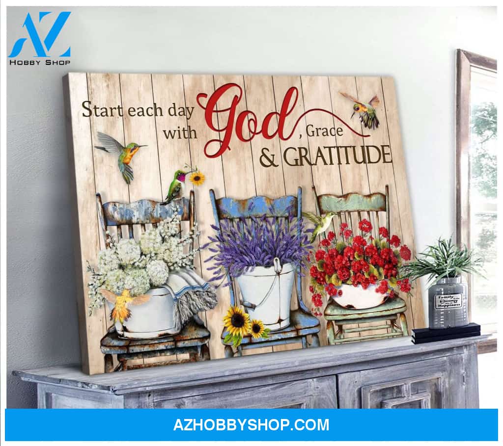 God Grace Gratitude Hummingbird Wall Art Canvas