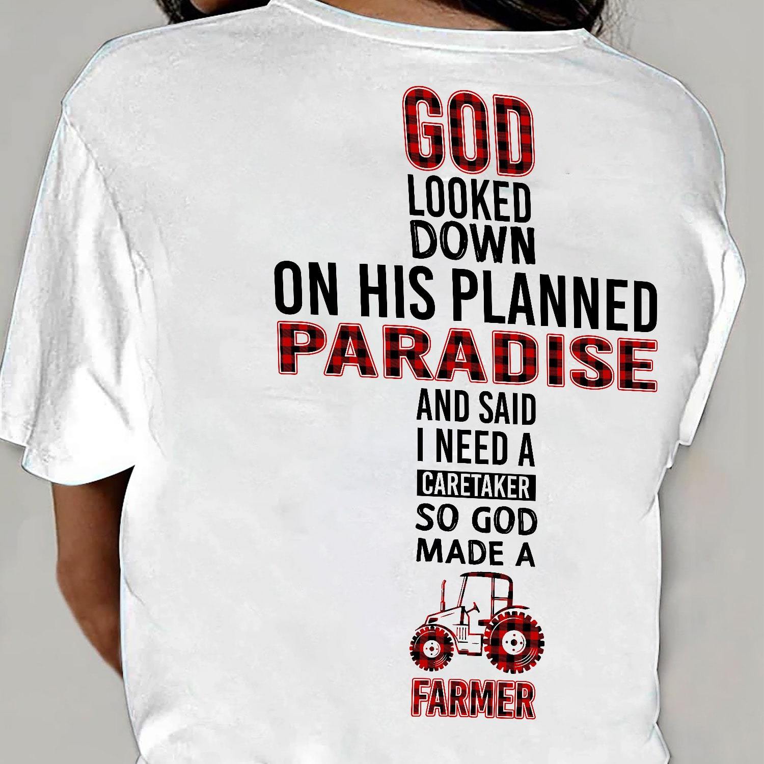 God need a caretaker so he made a farmer - Jesus Back printed Apparel