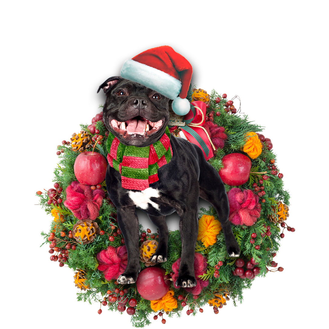Godmerch- Ornament- Staffordshire Bull Terrier Christmas Ornament, Happy Christmas Ornament, Car Ornament