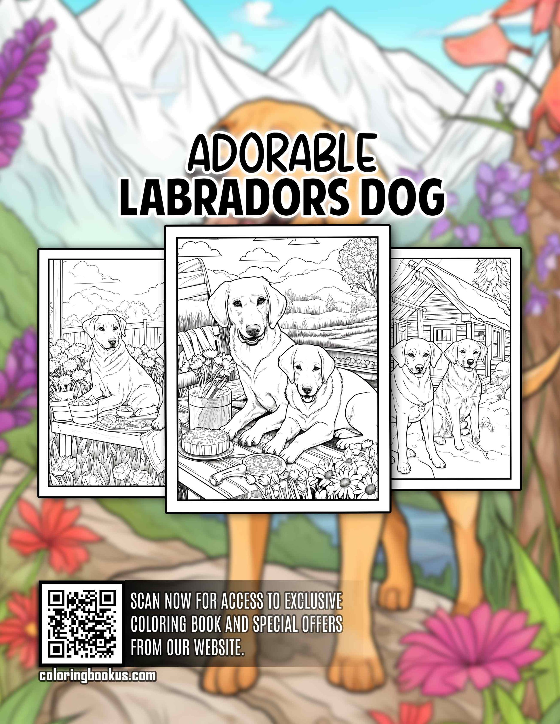 Adorable Labradors Dog 30 Pages Printable Coloring Book